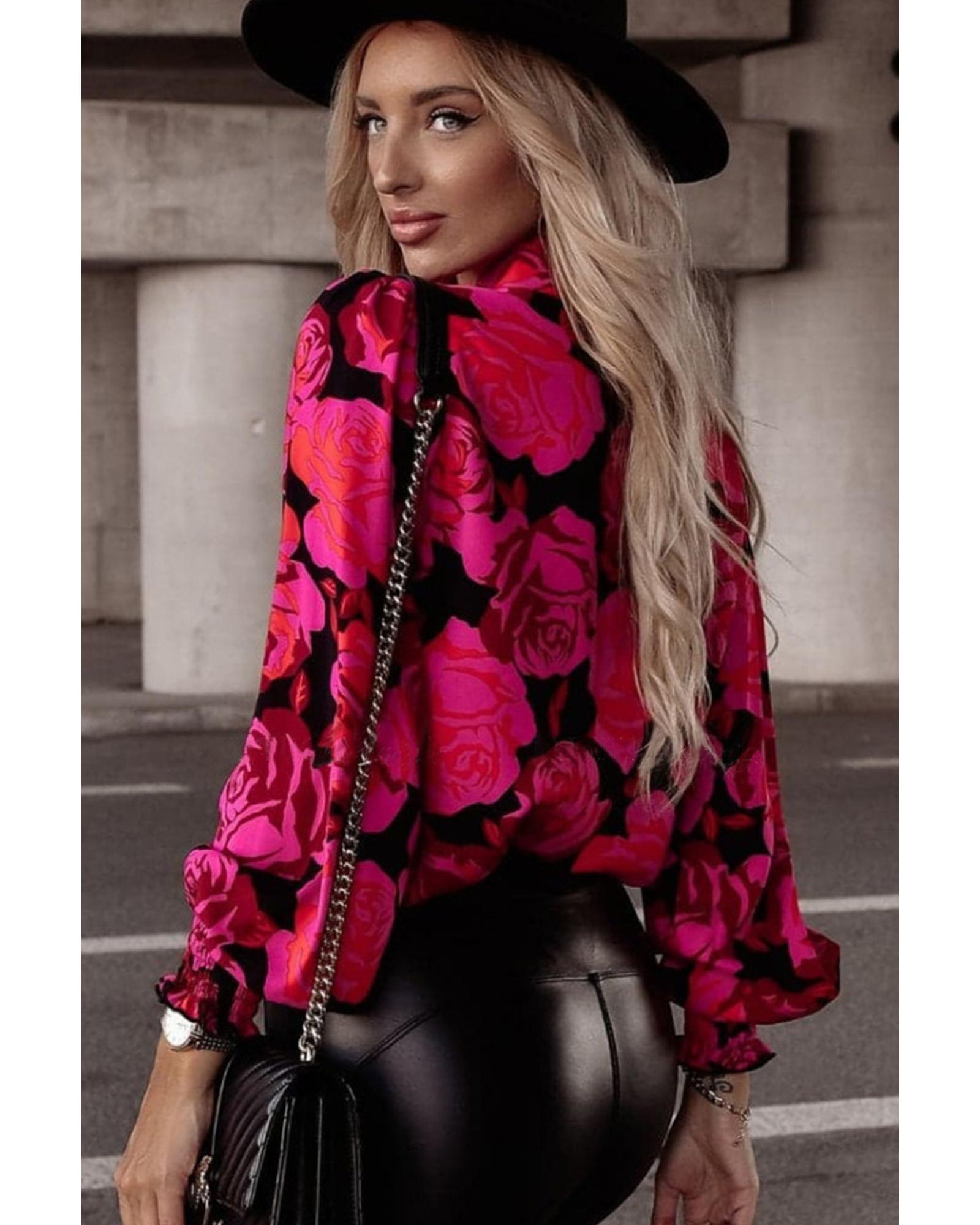 Azura Exchange Floral Shirred Cuffs Shirt - L