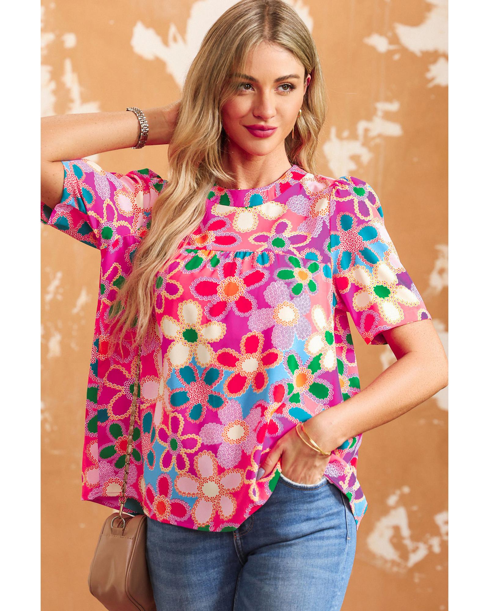 - Stylish and feminine Boho Flower Print Puff Short Sleeve Top