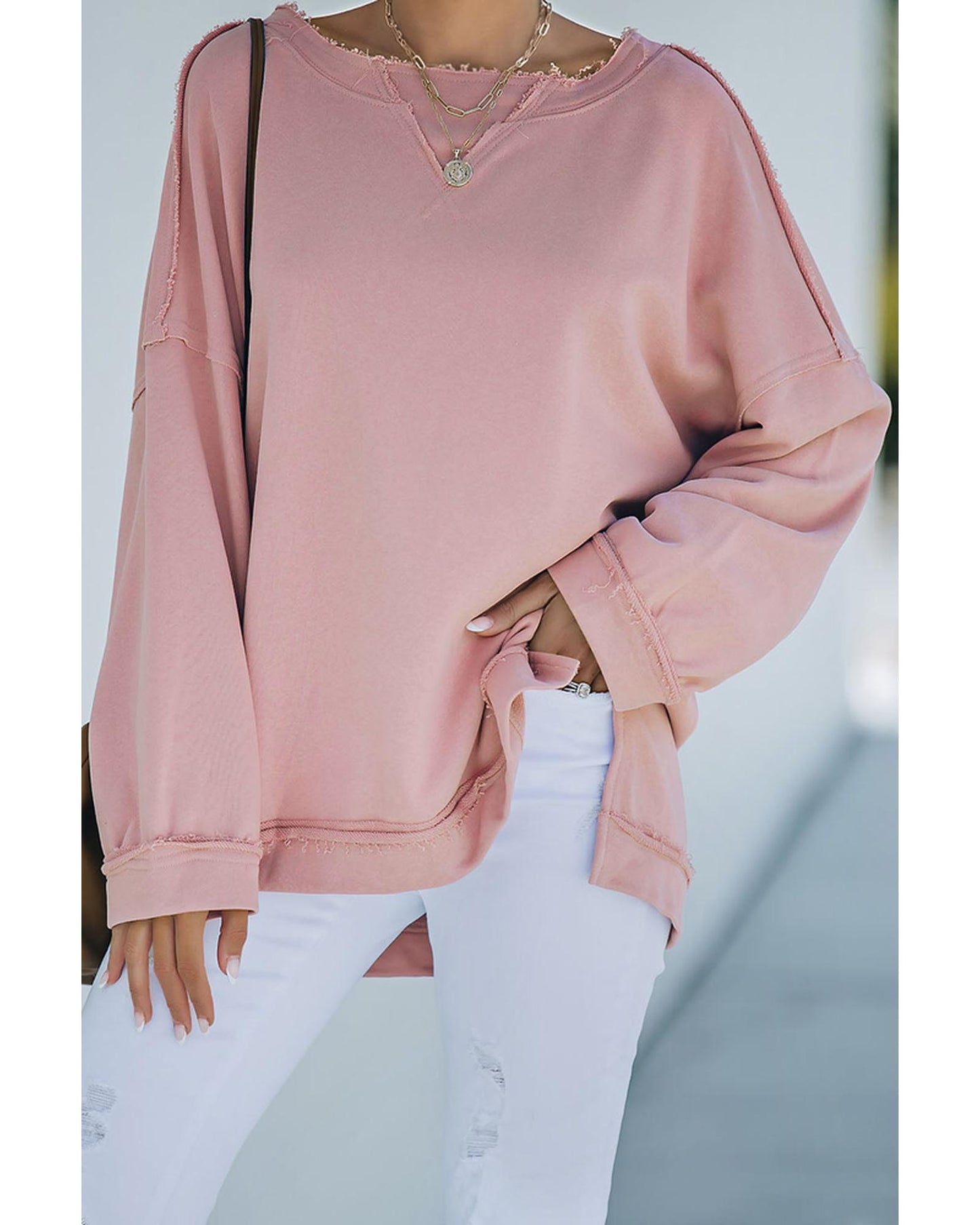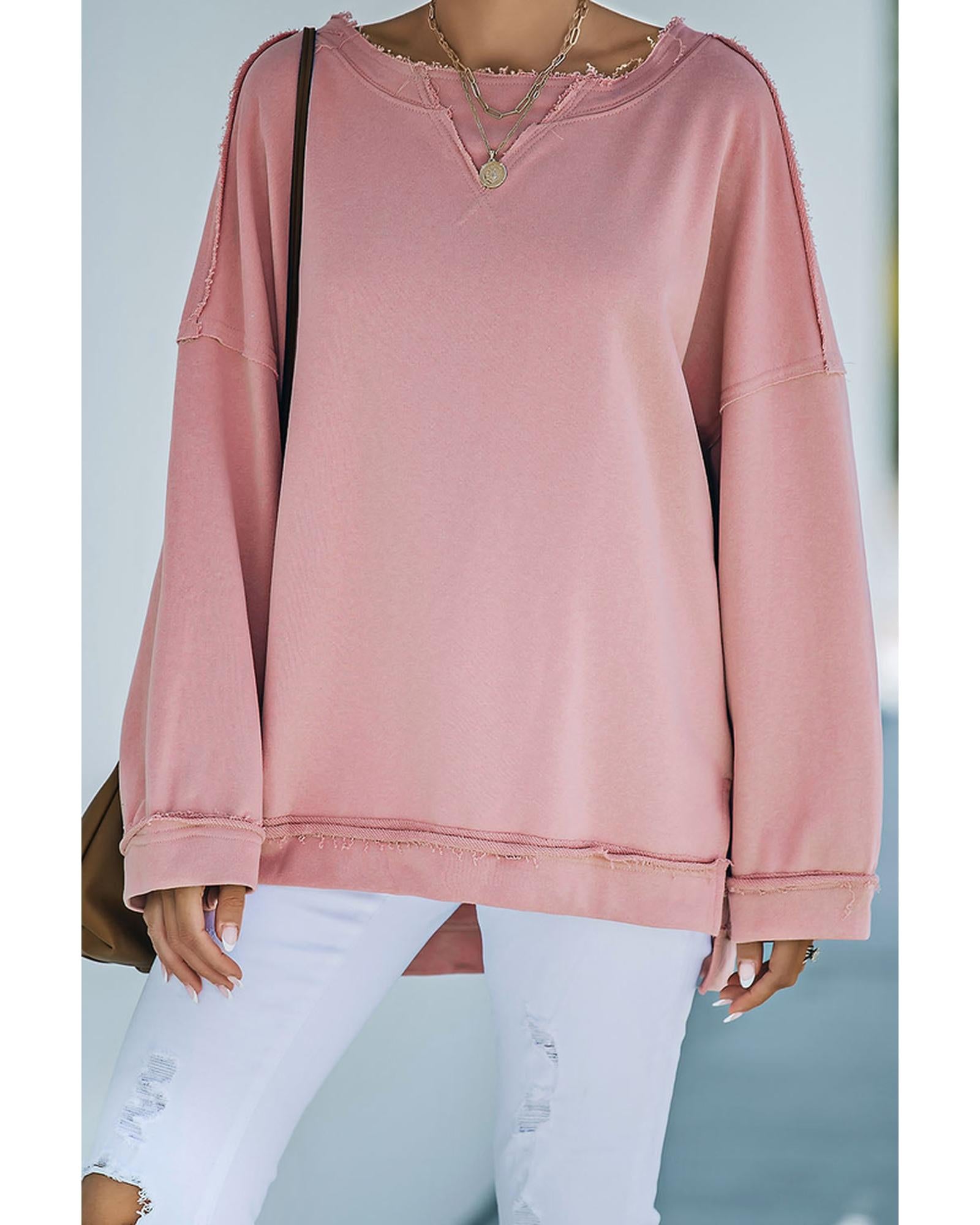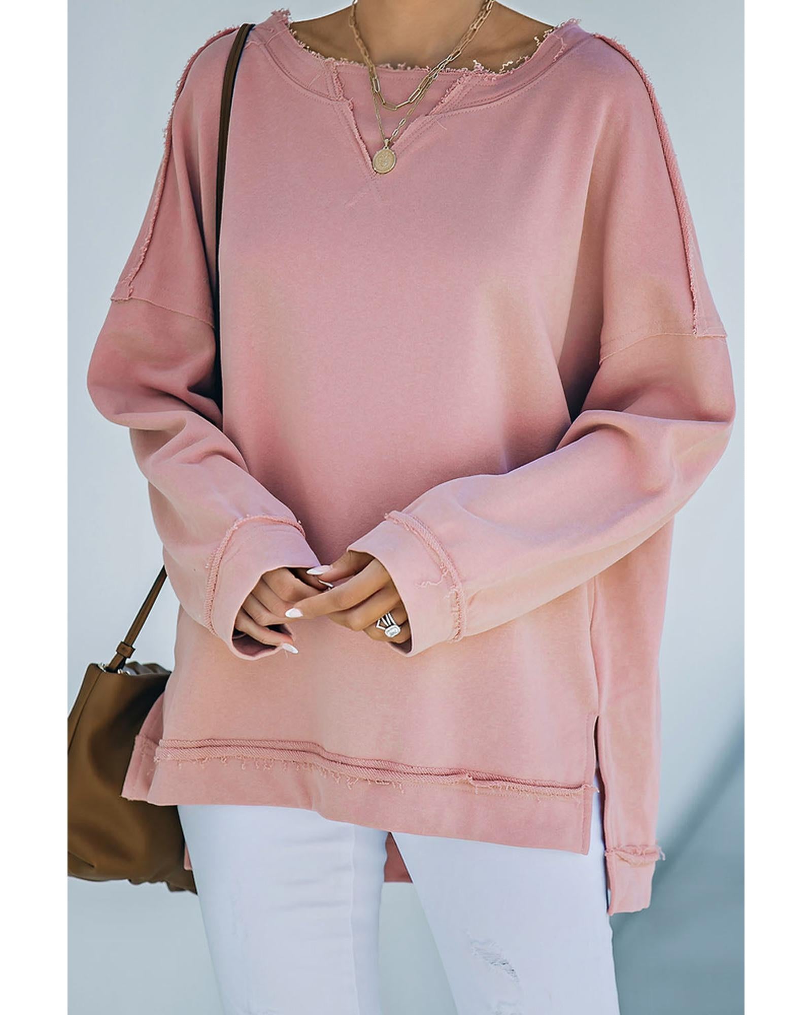 Azura Exchange Frayed Trim Side Slit Sweatshirt - S