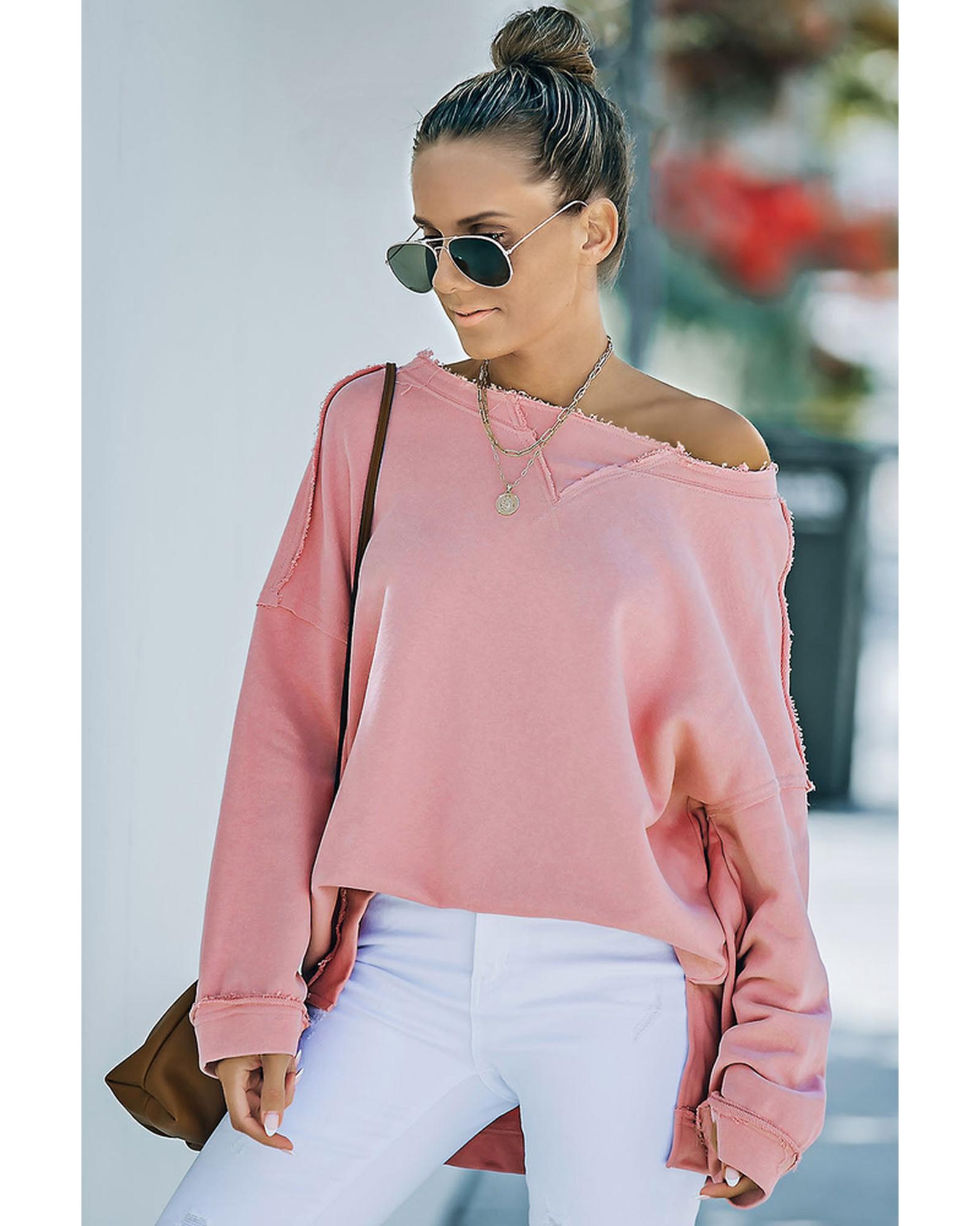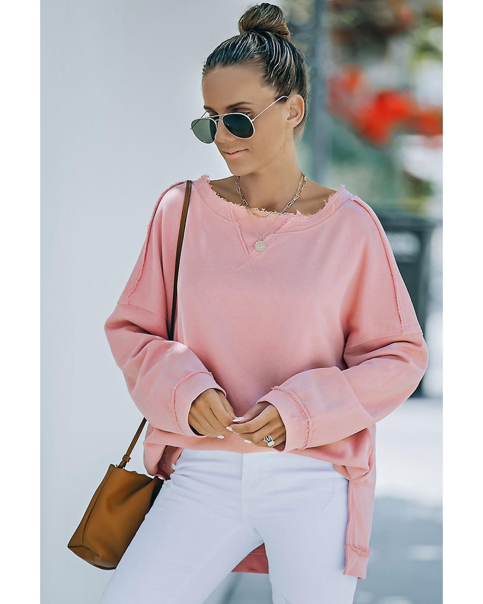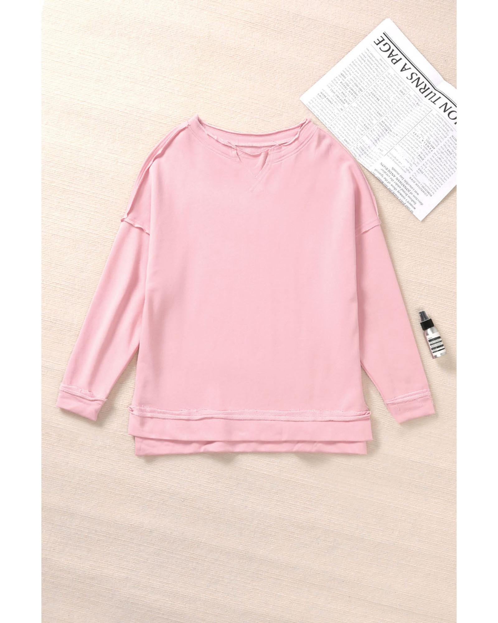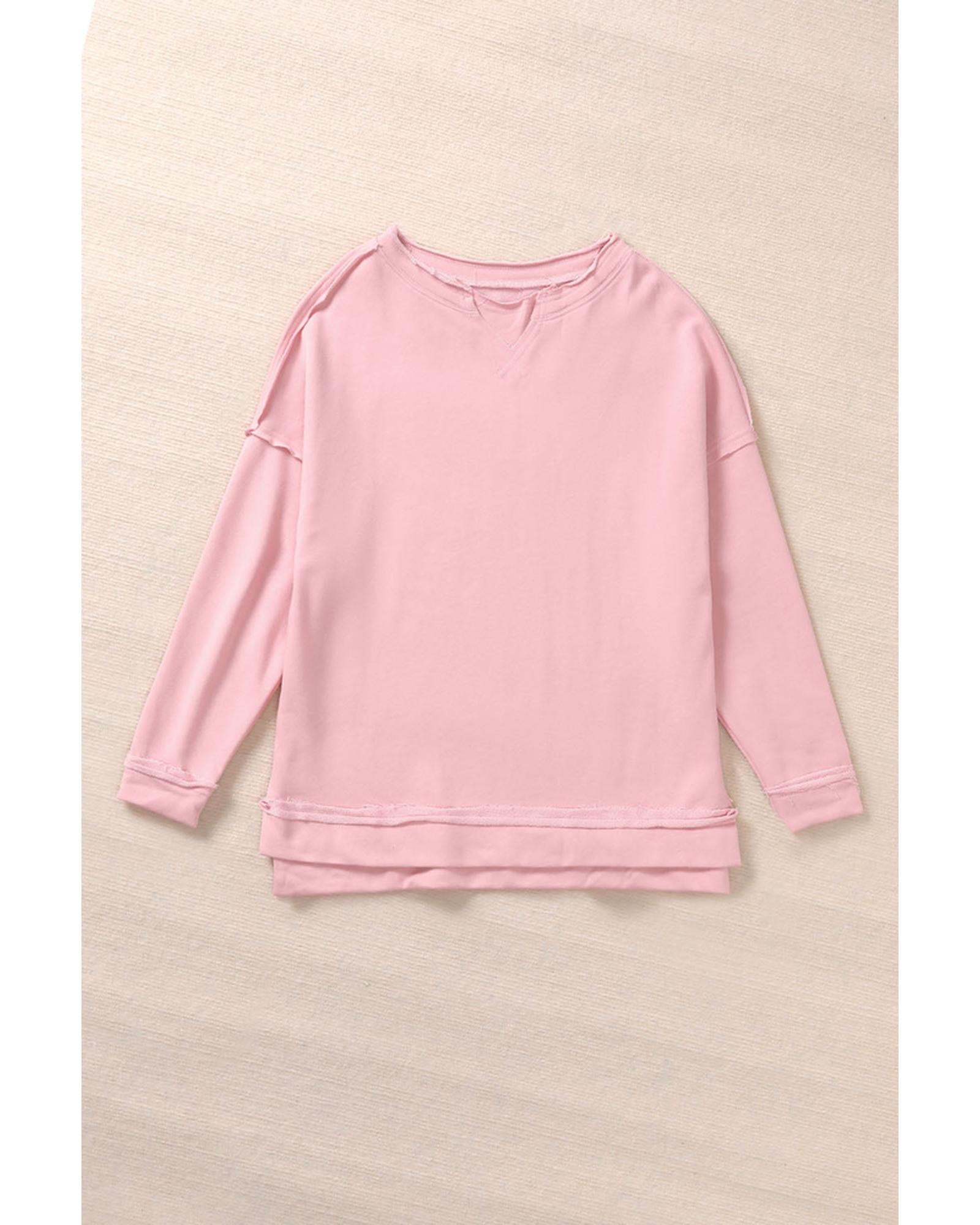 Azura Exchange Frayed Trim Side Slit Sweatshirt - S