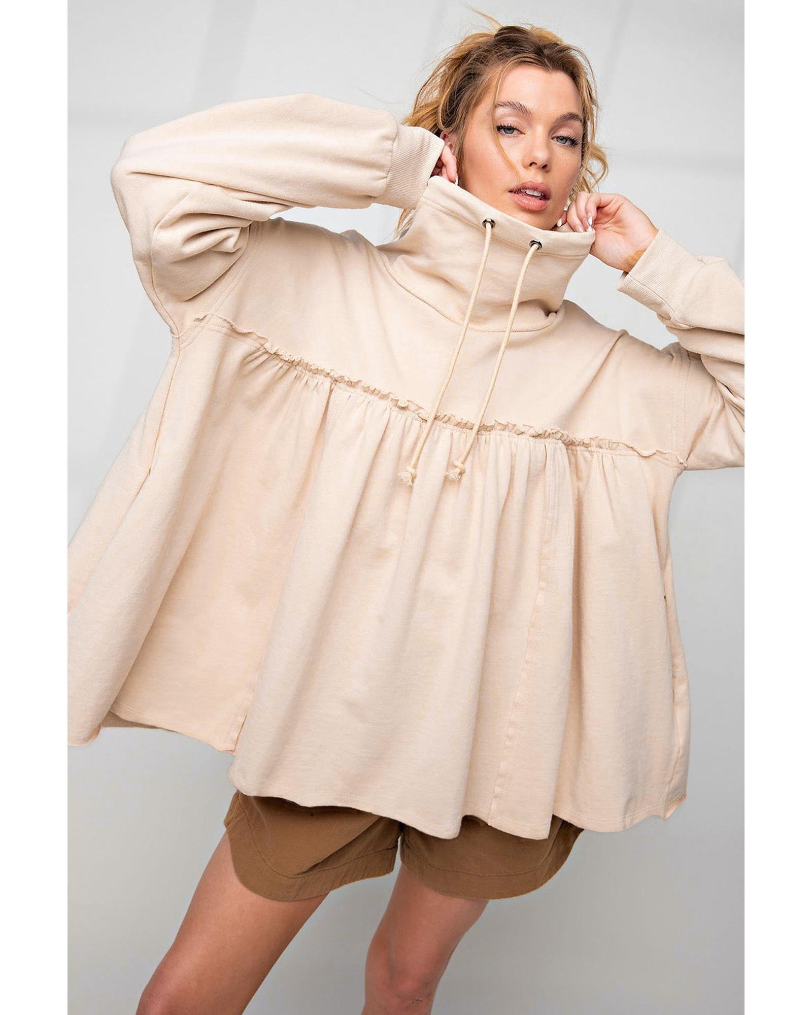 - Beige frill exposed seam cowl neck oversized sweatshirt
