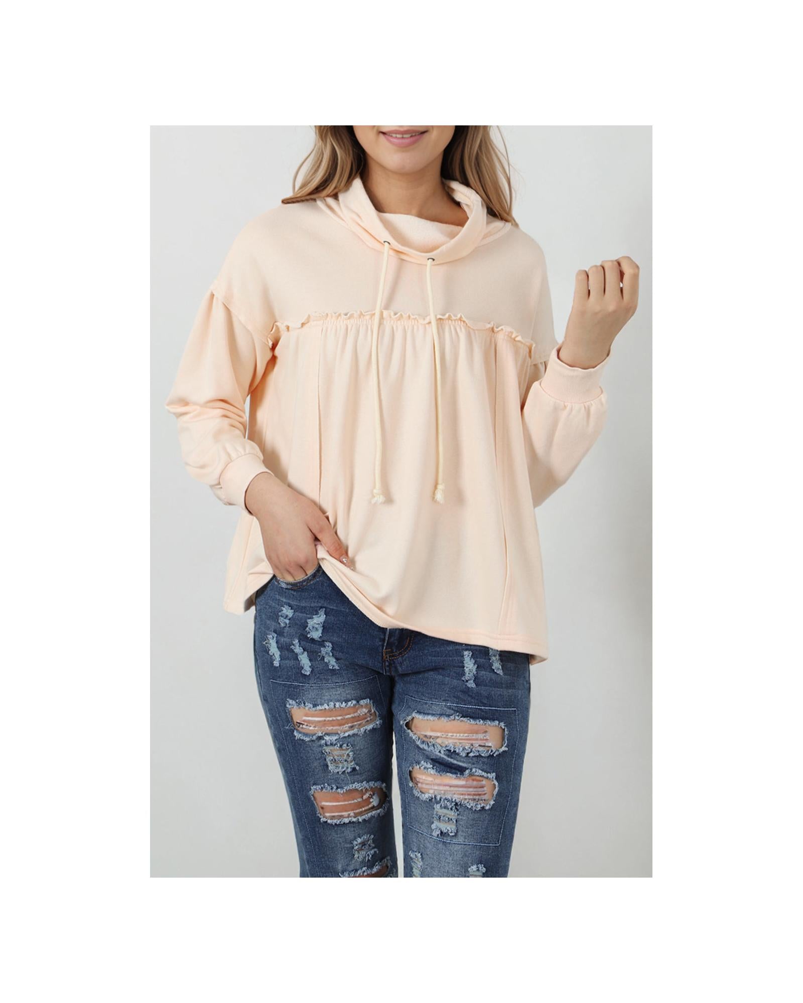 - Beige frill exposed seam cowl neck oversized sweatshirt