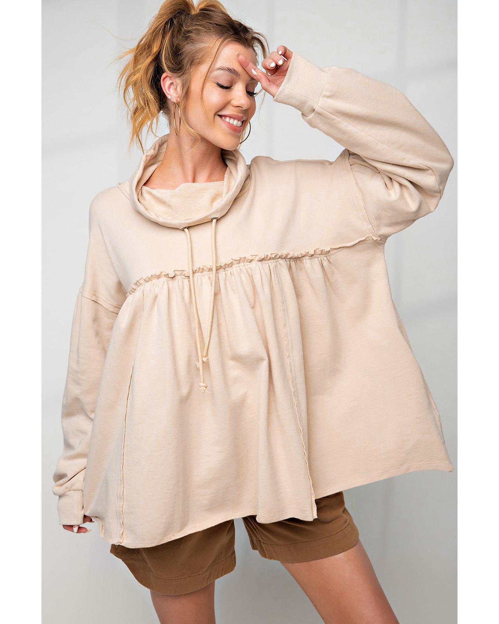 - Beige frill exposed seam cowl neck oversized sweatshirt
