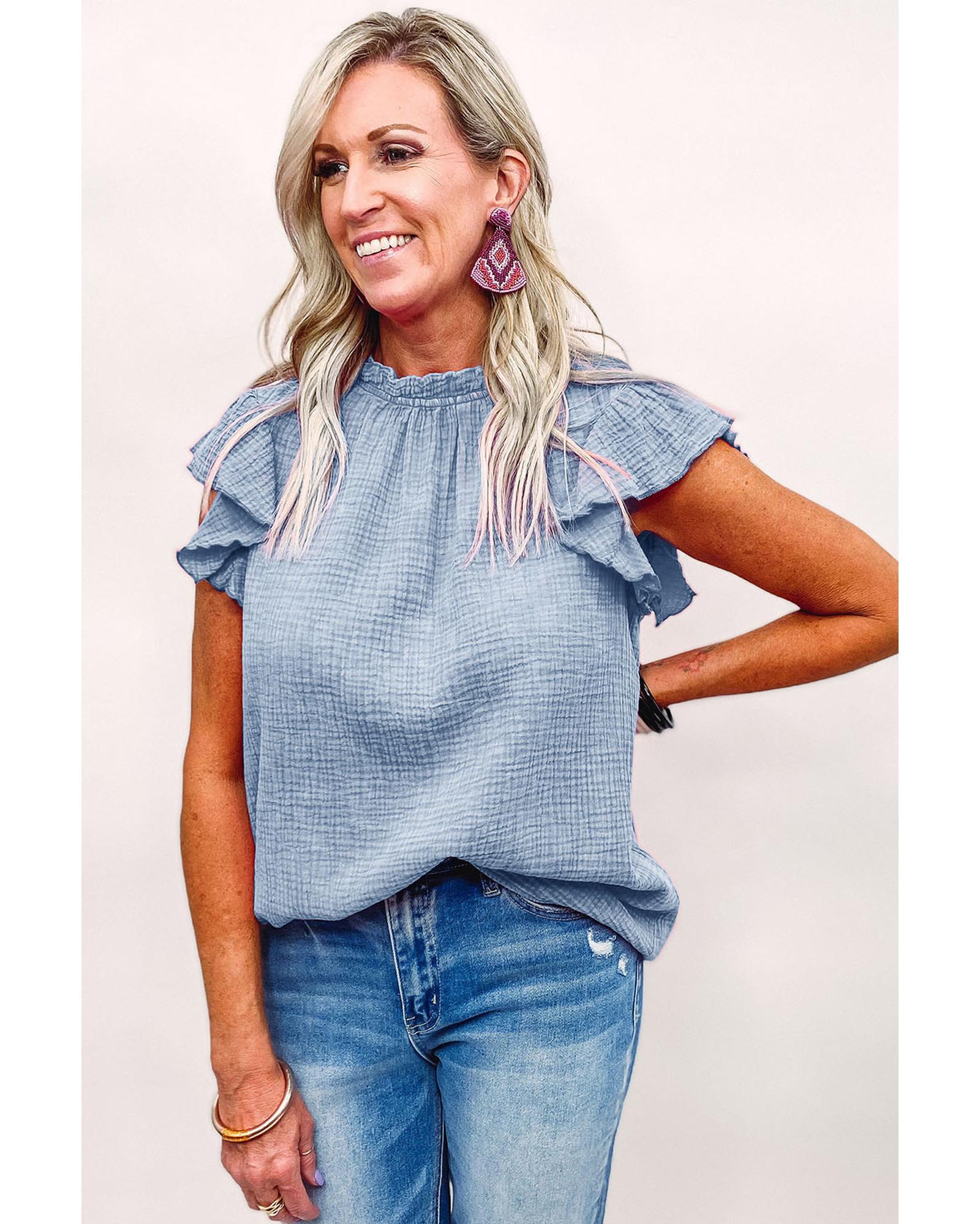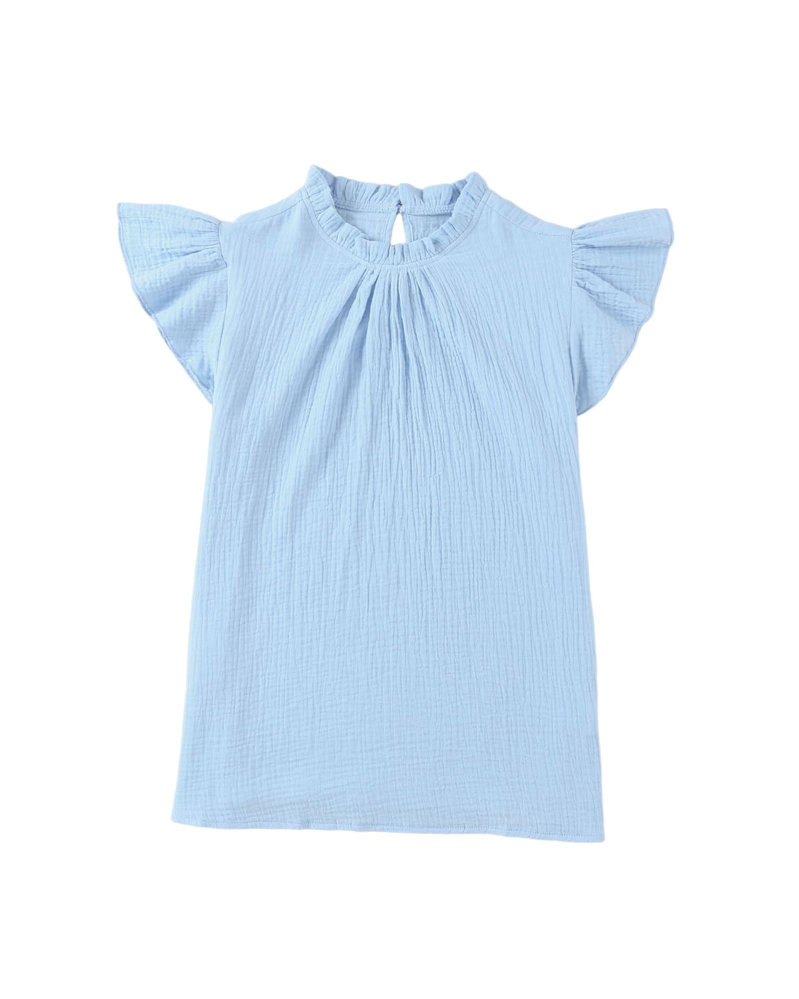- Stylish and feminine Flutter Sleeve Frilled Neck Textured Blouse