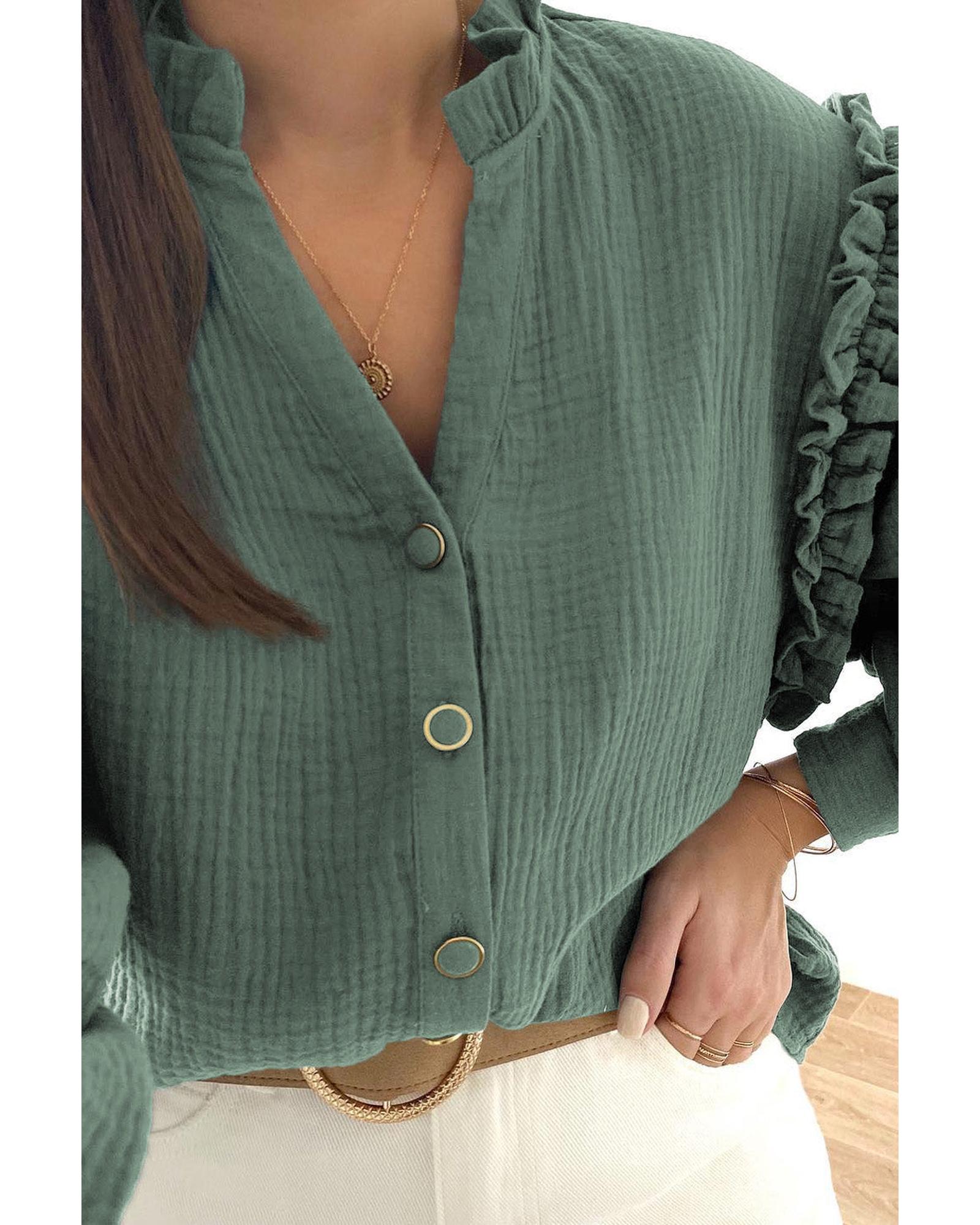Azura Exchange Frilled Split Neck Crinkled Shirt - M