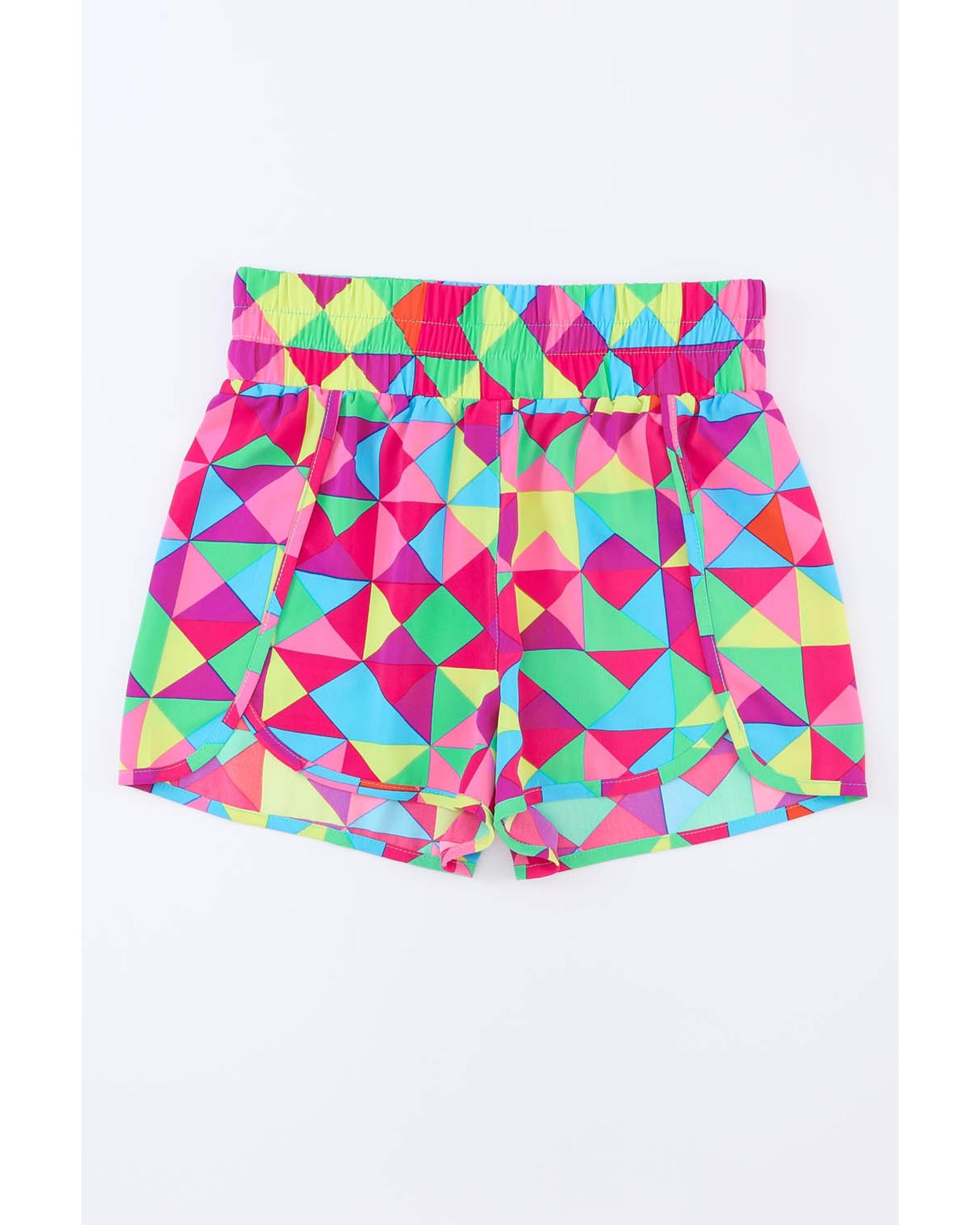 - Stylish and comfortable multicolor geometric high waisted athletic shorts