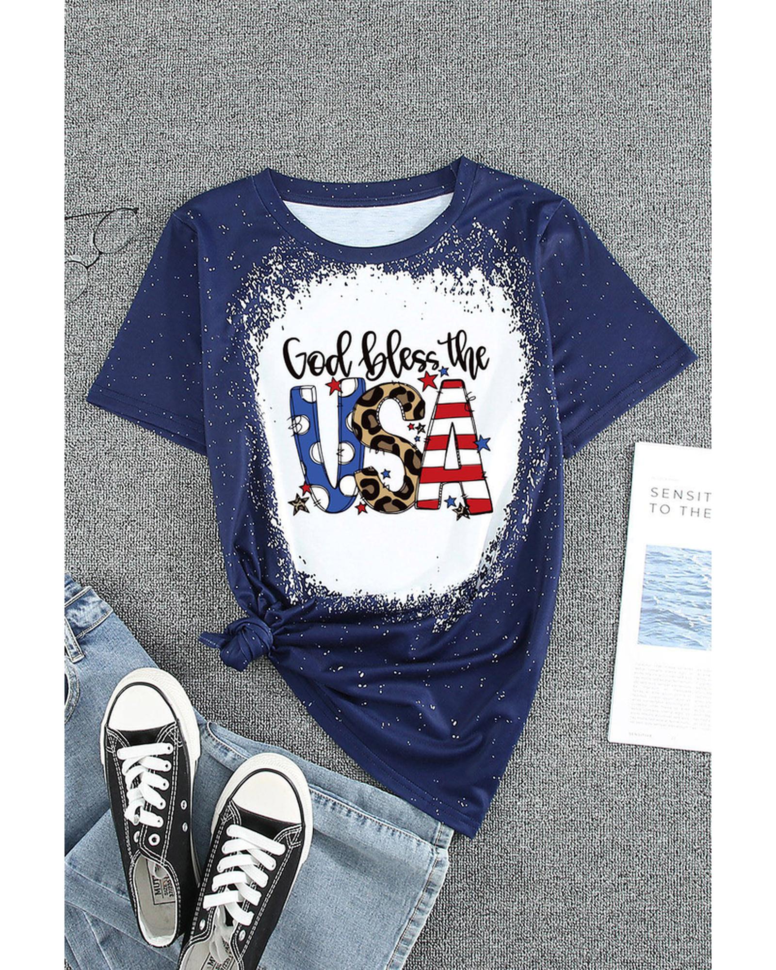 - Womens God Bless the USA Print Bleach Short Sleeve T-Shirt