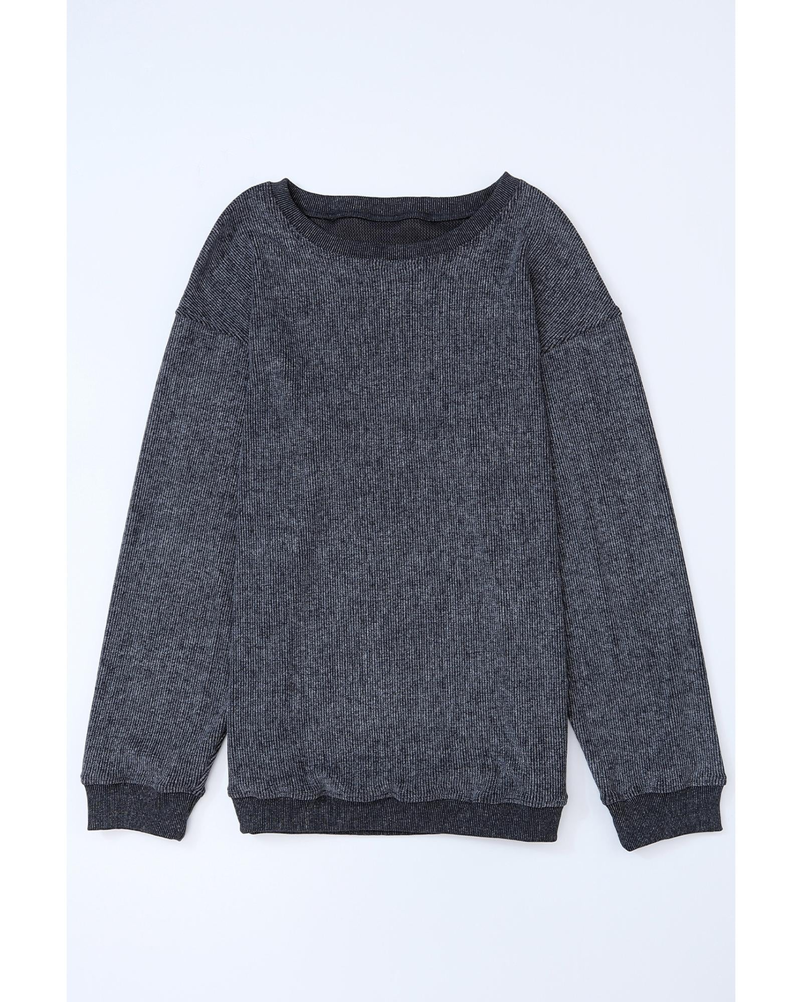 Azura Exchange Gray Ribbed Knit Round Neck Pullover Sweatshirt - L