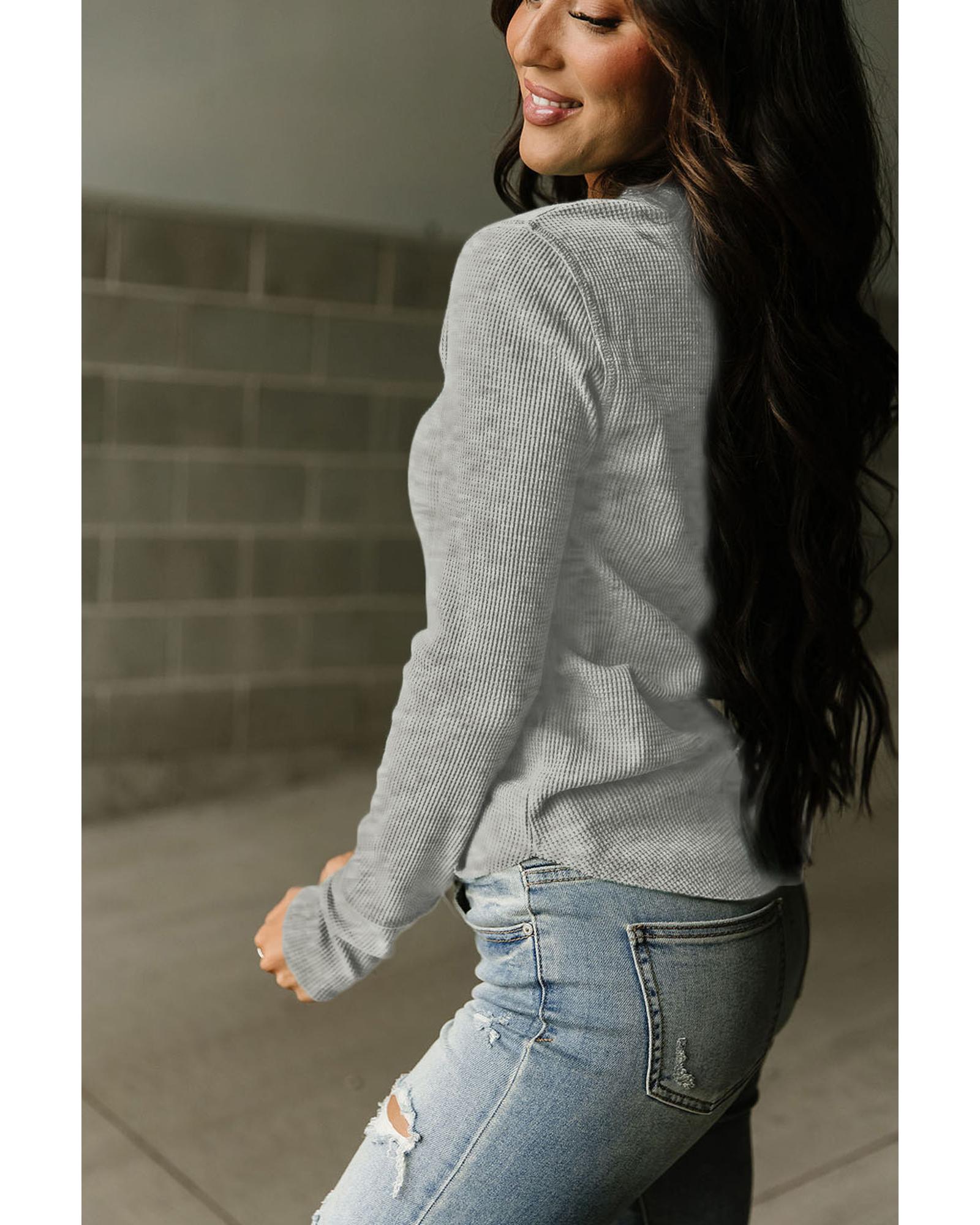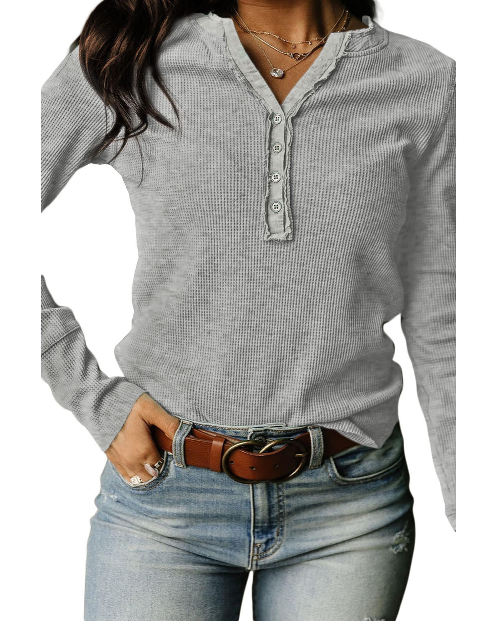 Azura Exchange Gray Waffle Knit Henley Top - XL