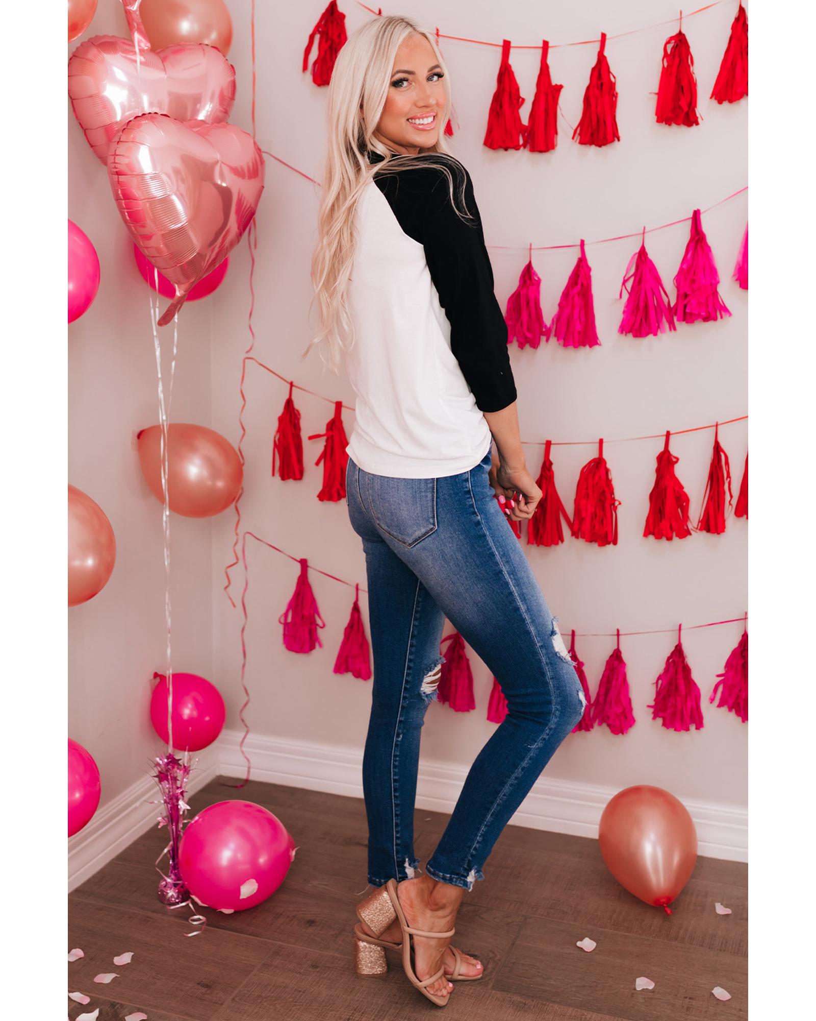 Azura Exchange Heart Graphic Contrast Sleeve Tee - M