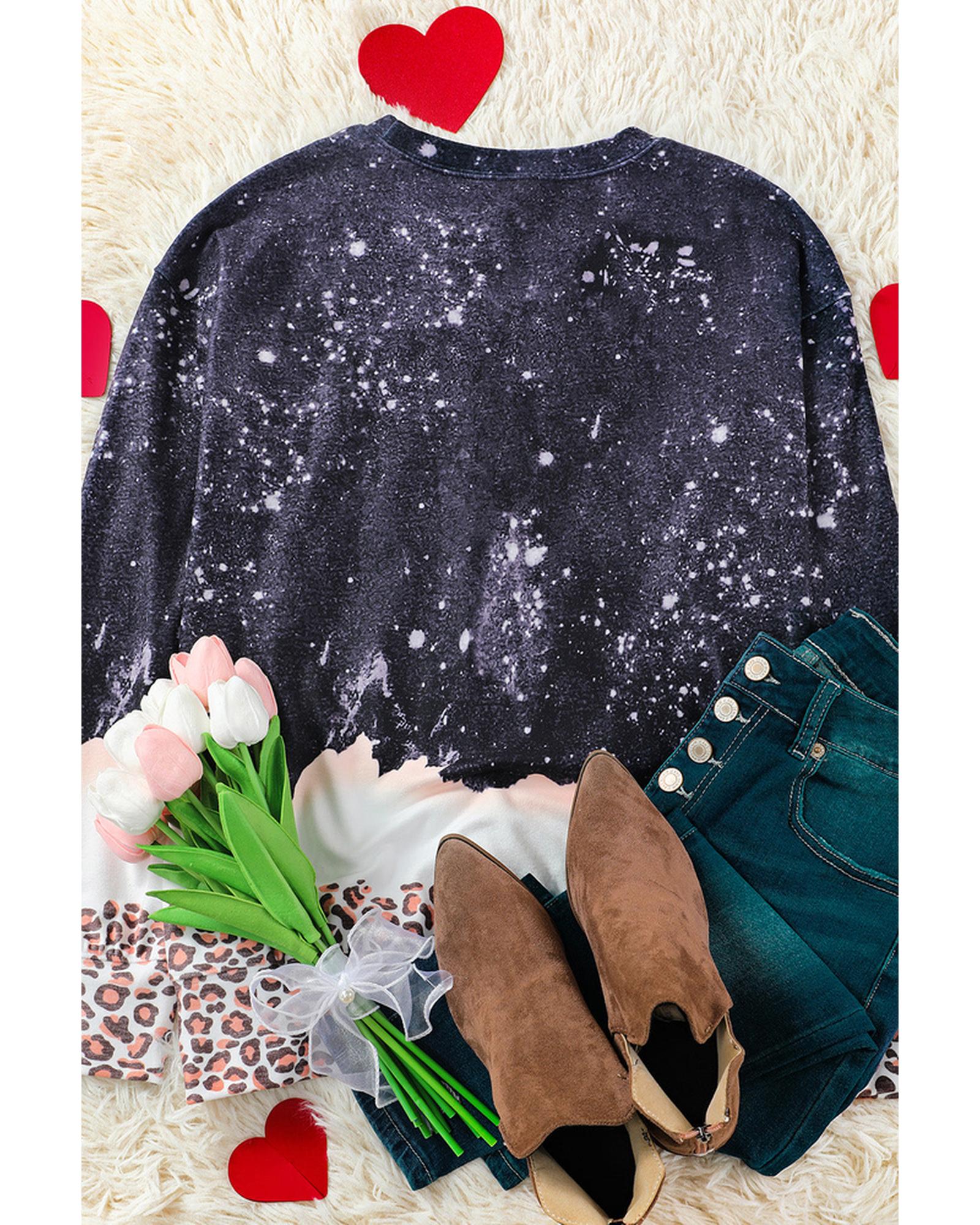 Azura Exchange Heart Leopard Splicing Pullover Sweatshirt - M