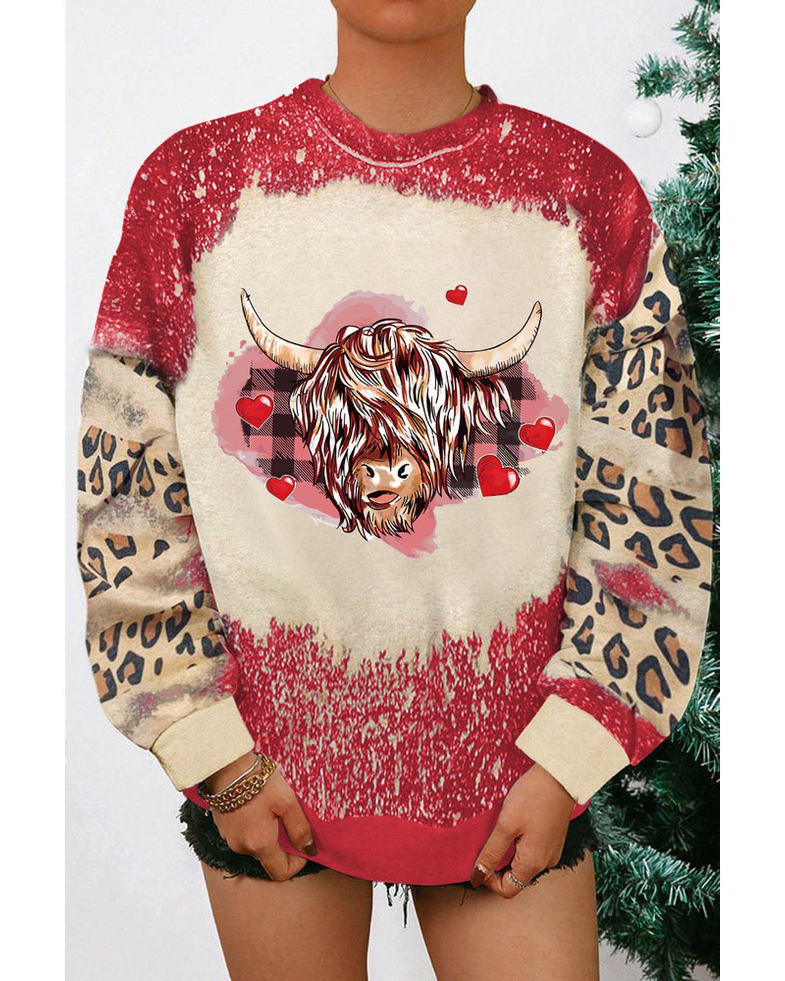 Azura Exchange Heifer Graphic Print Leopard Bleached Sweatshirt - S
