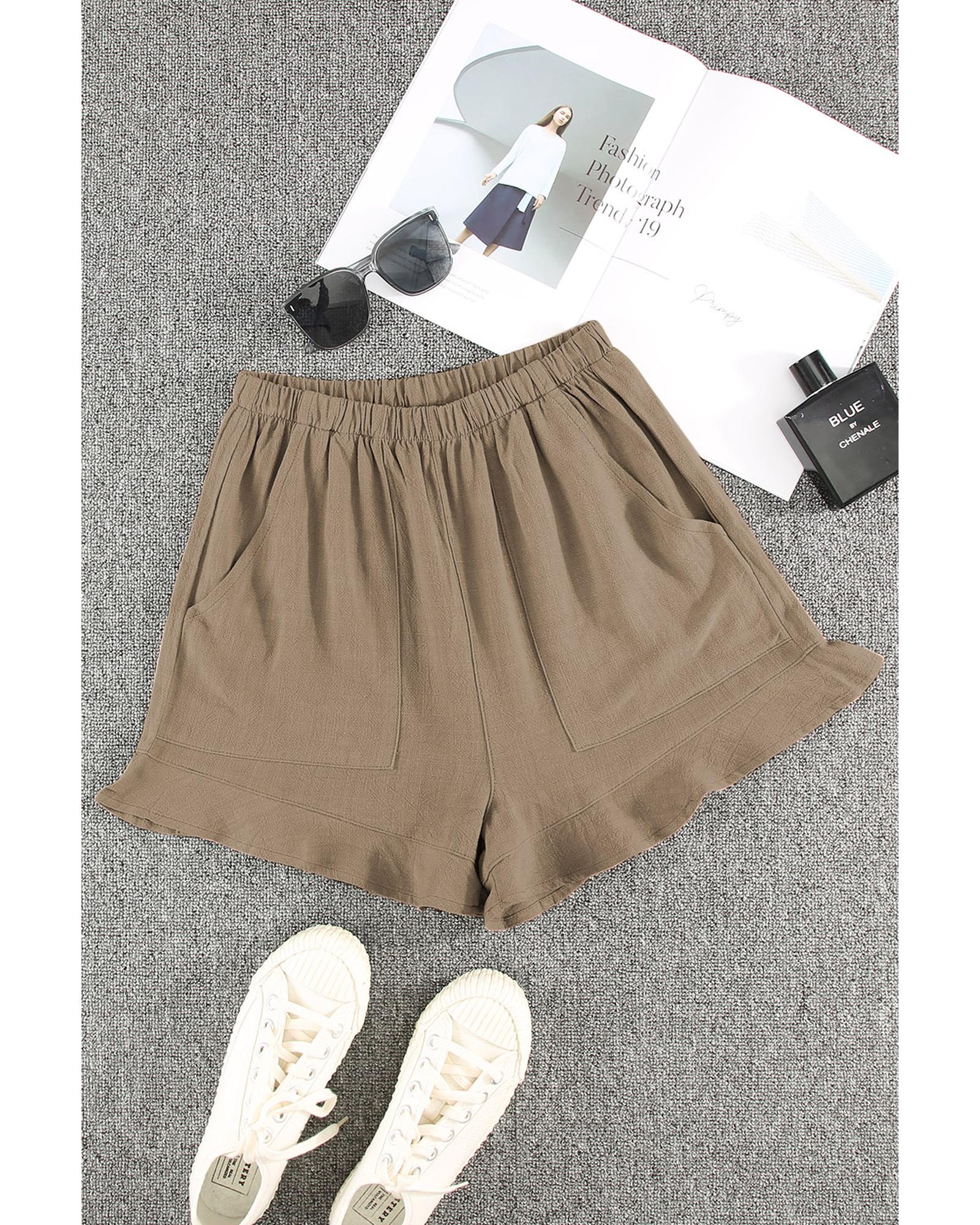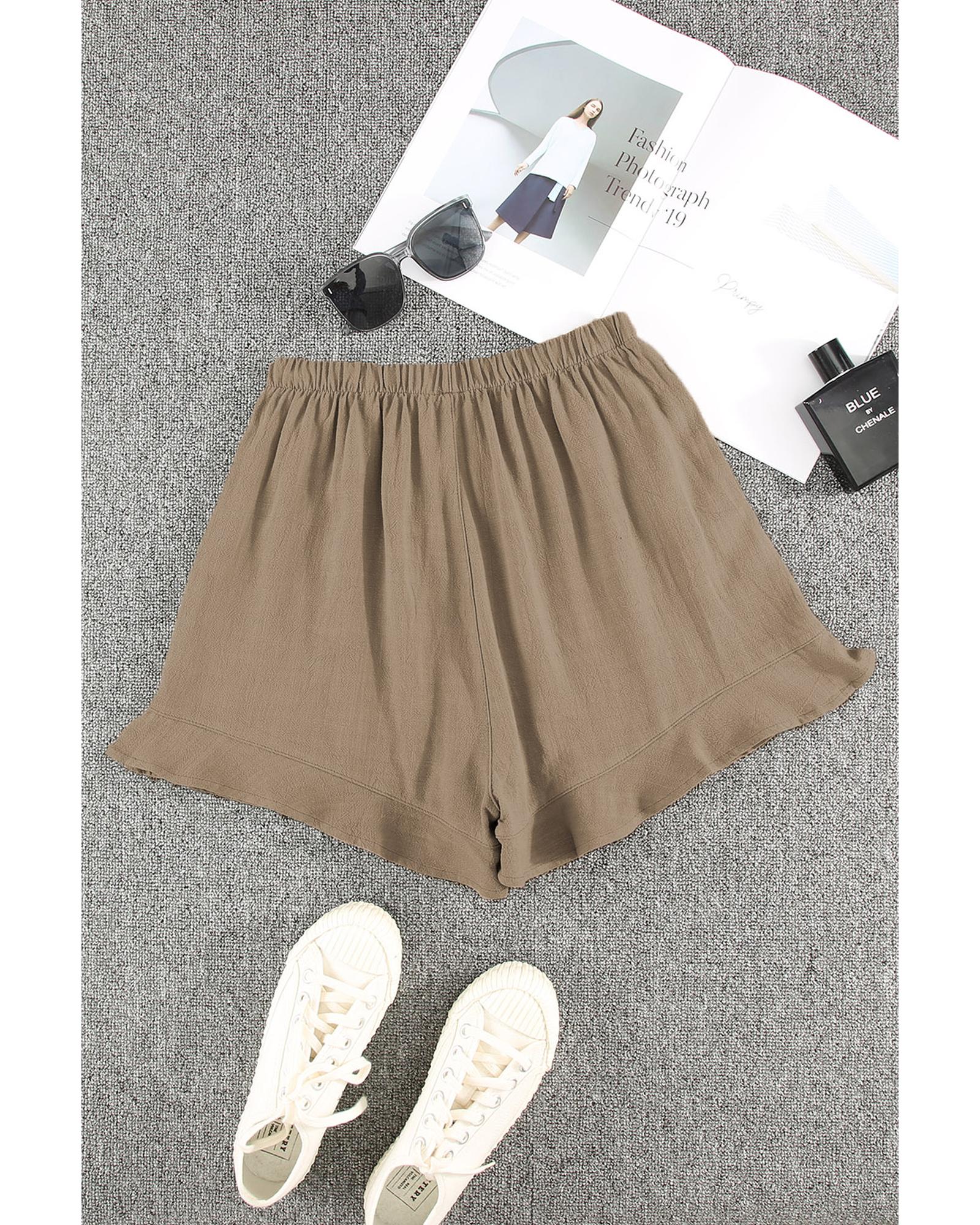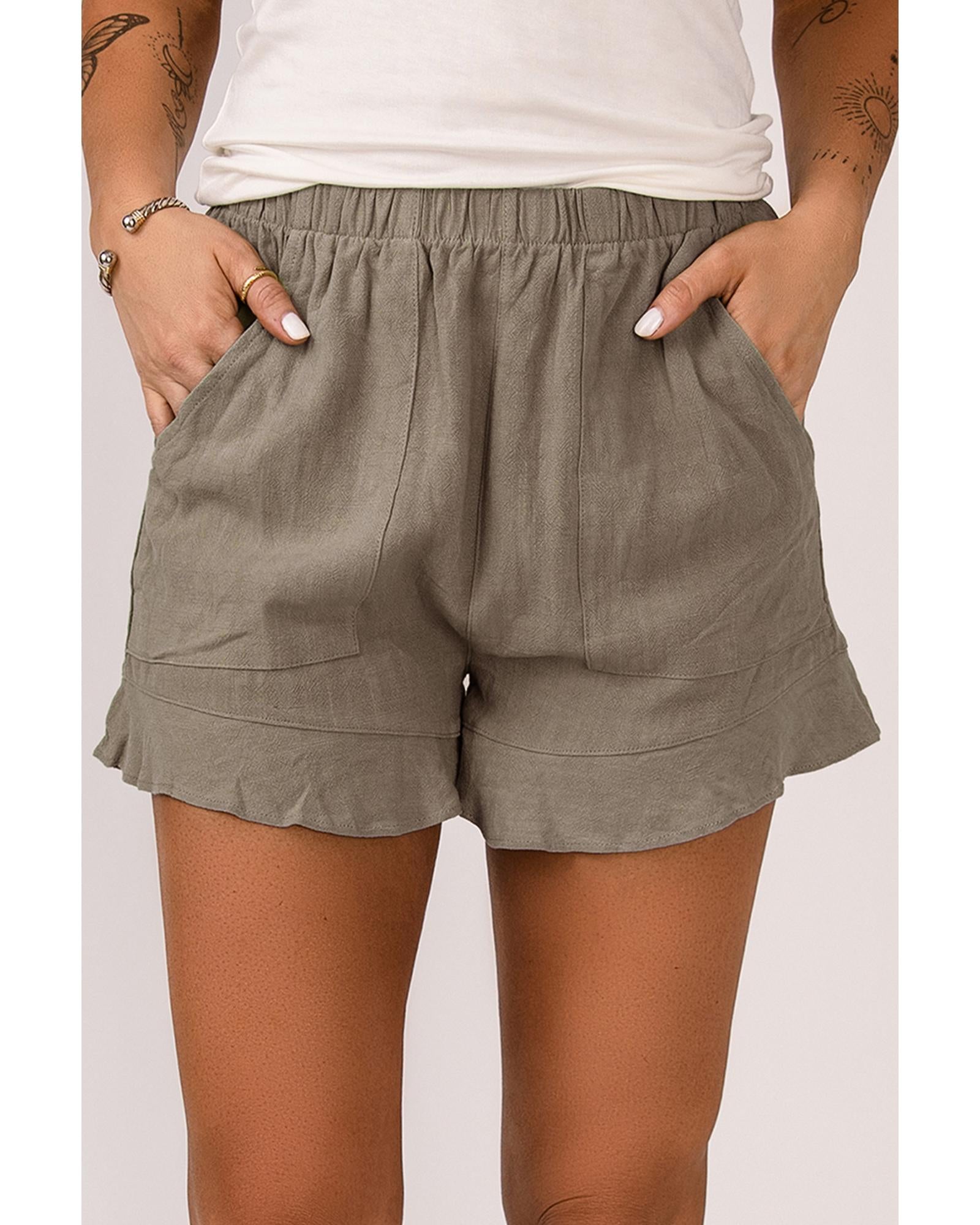 - Khaki High Waist Pocketed Ruffle Shorts