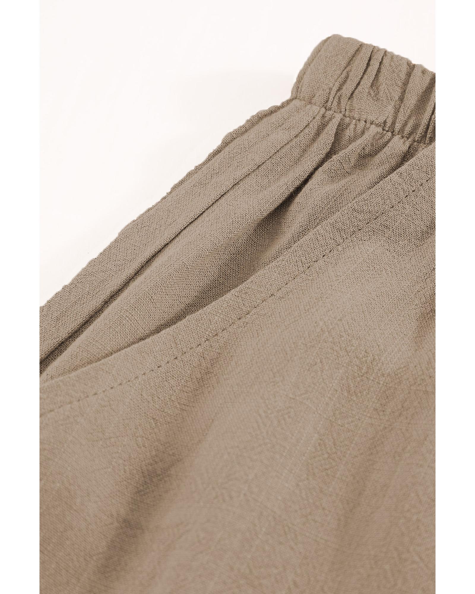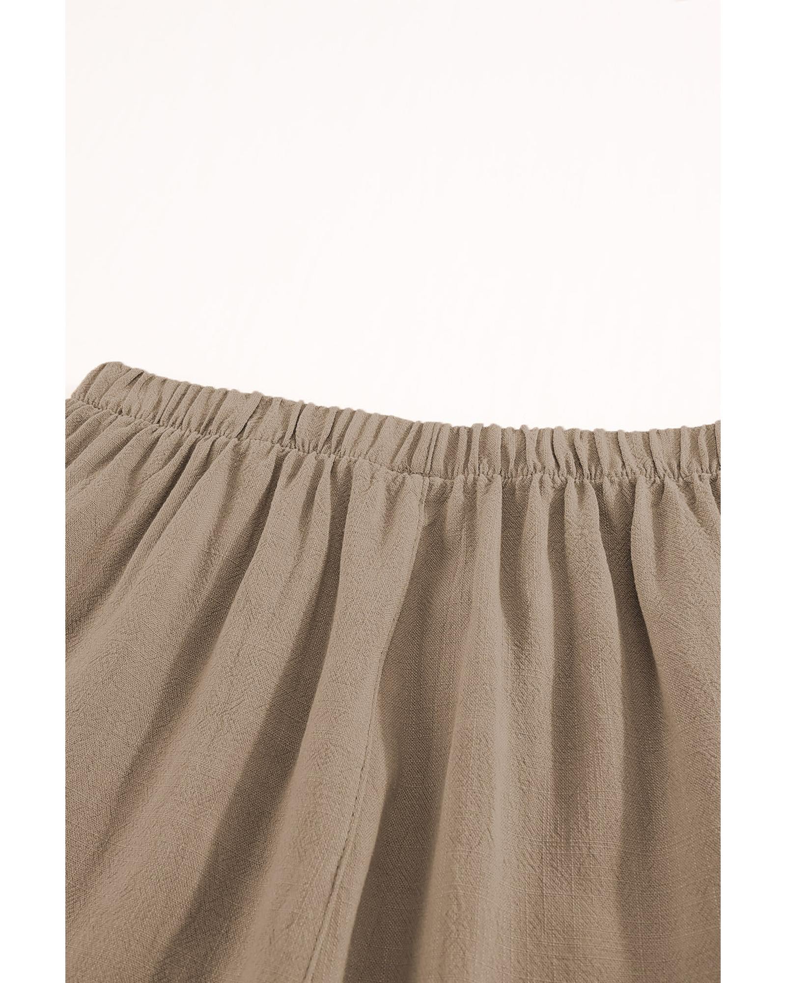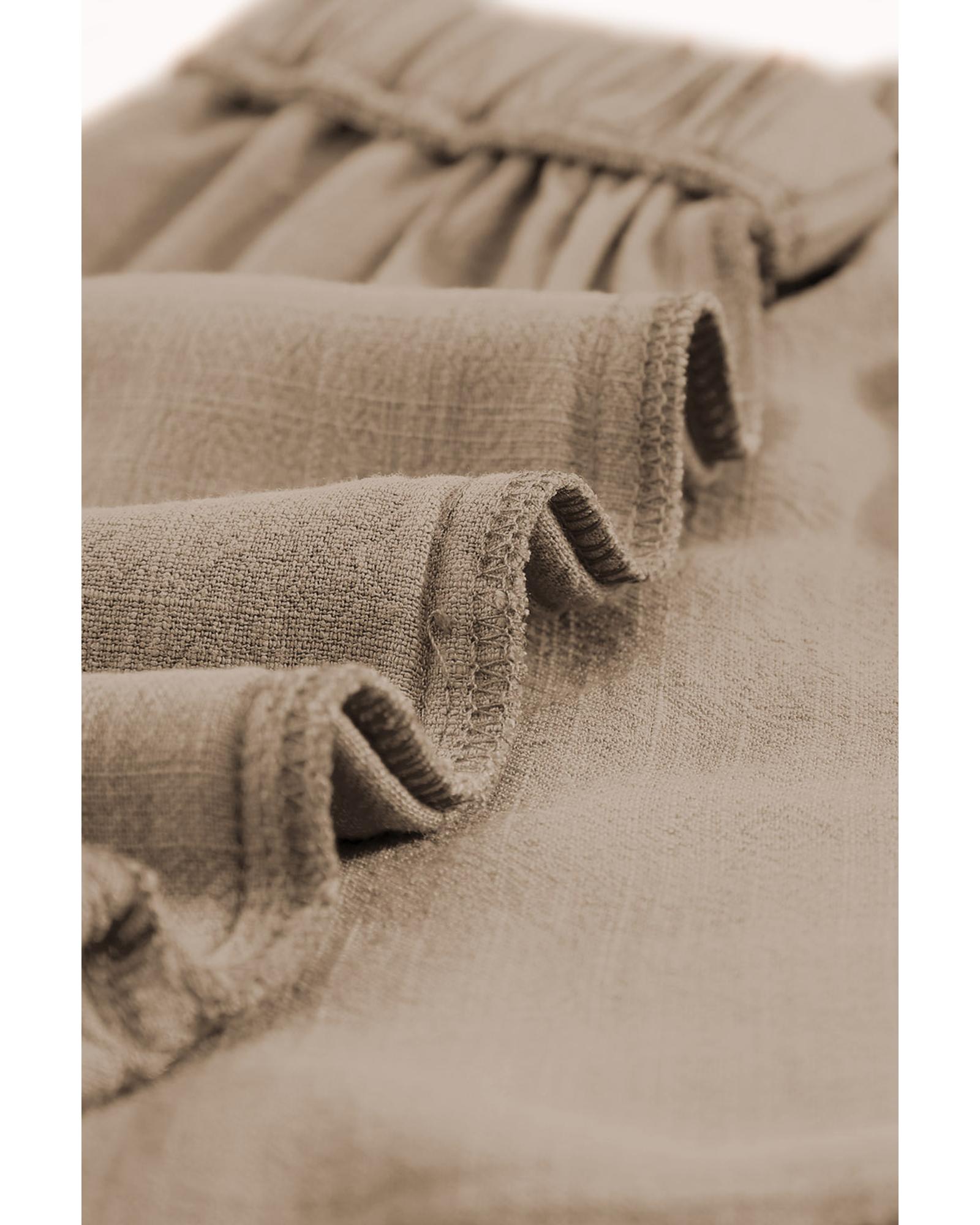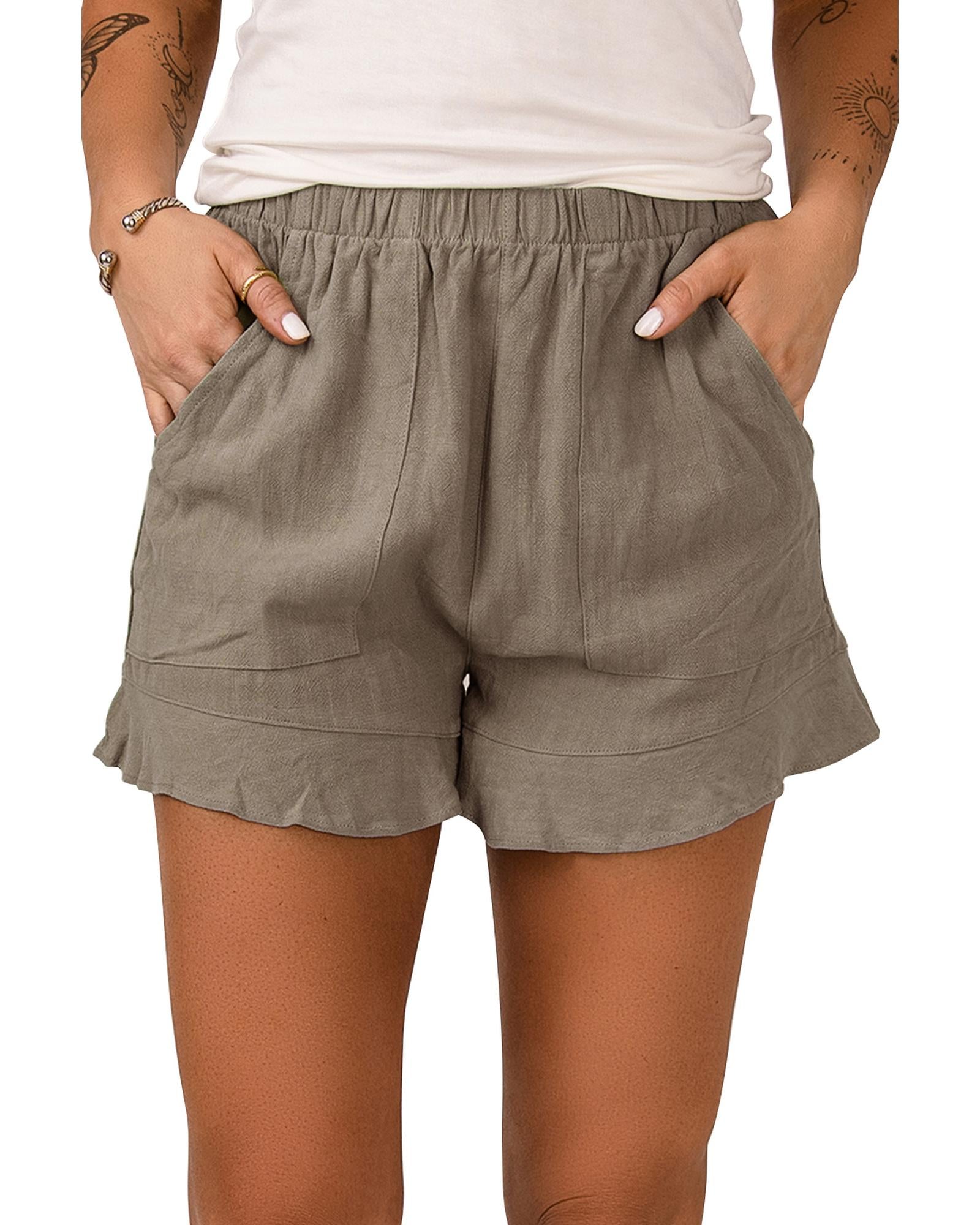 - Khaki High Waist Pocketed Ruffle Shorts