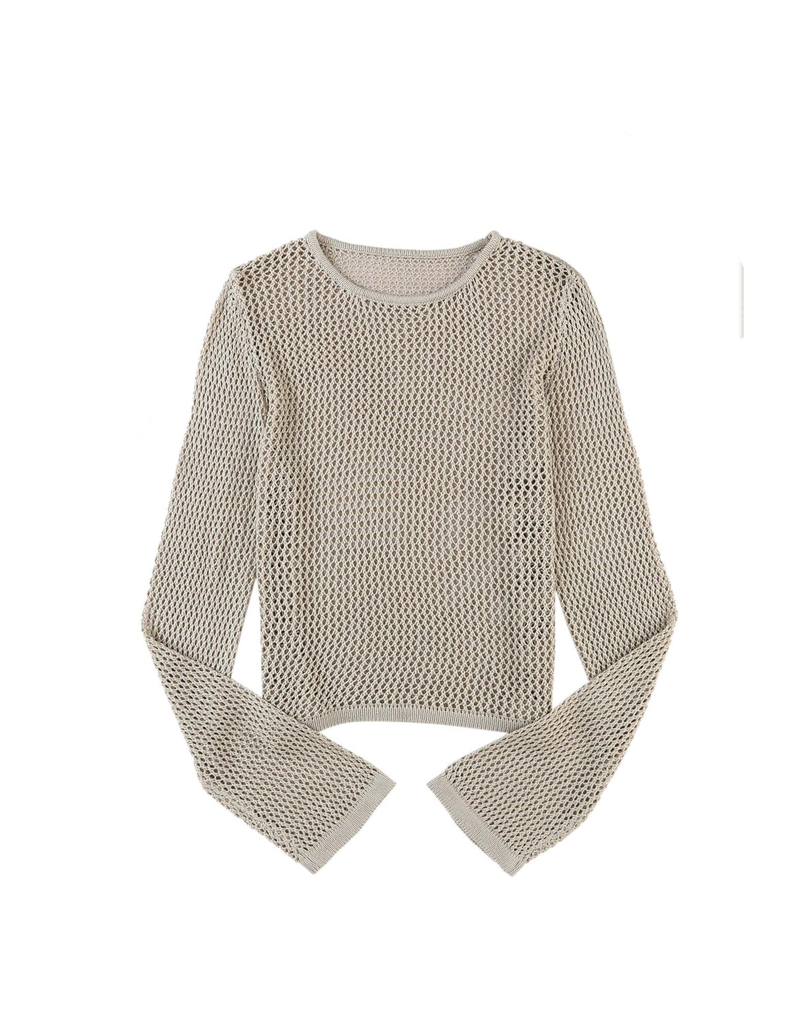 - Stylish and versatile Khaki Hollow-out Knit Long Sleeve Top