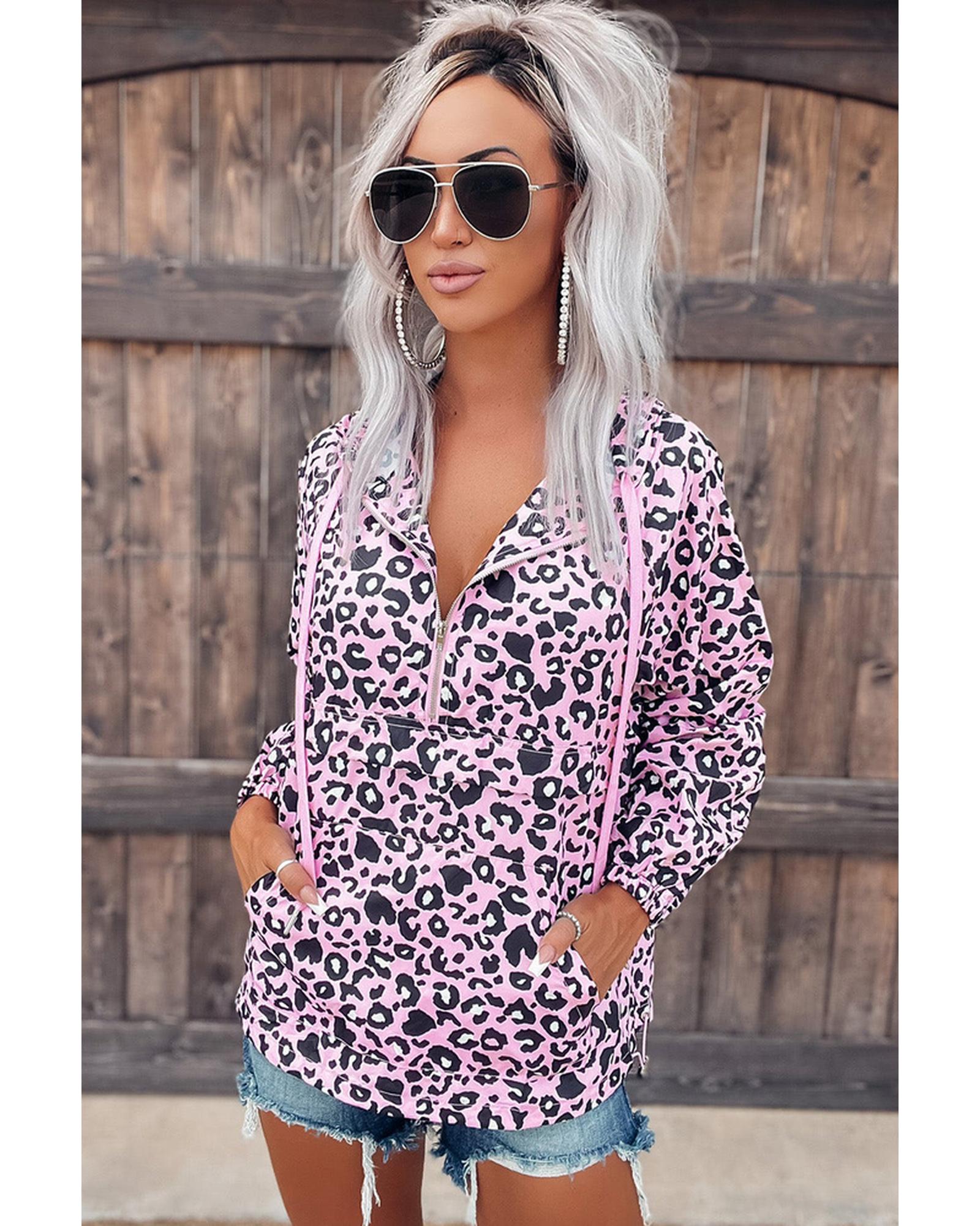 - Womens Print Zipper Kangaroo Pocket Pullover Hoodie