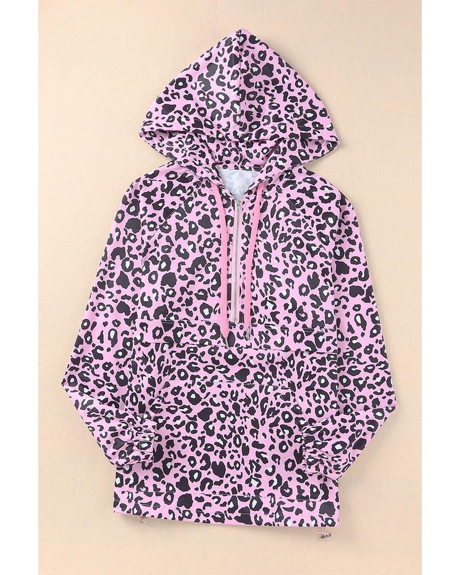 - Womens Print Zipper Kangaroo Pocket Pullover Hoodie