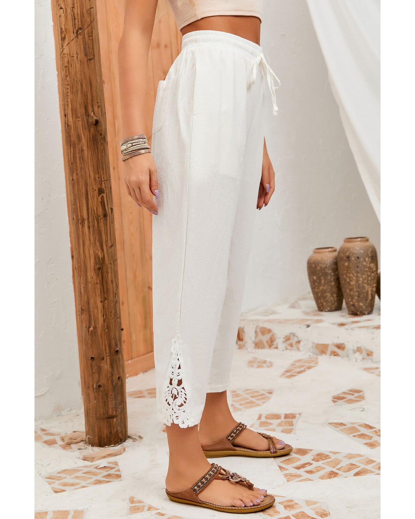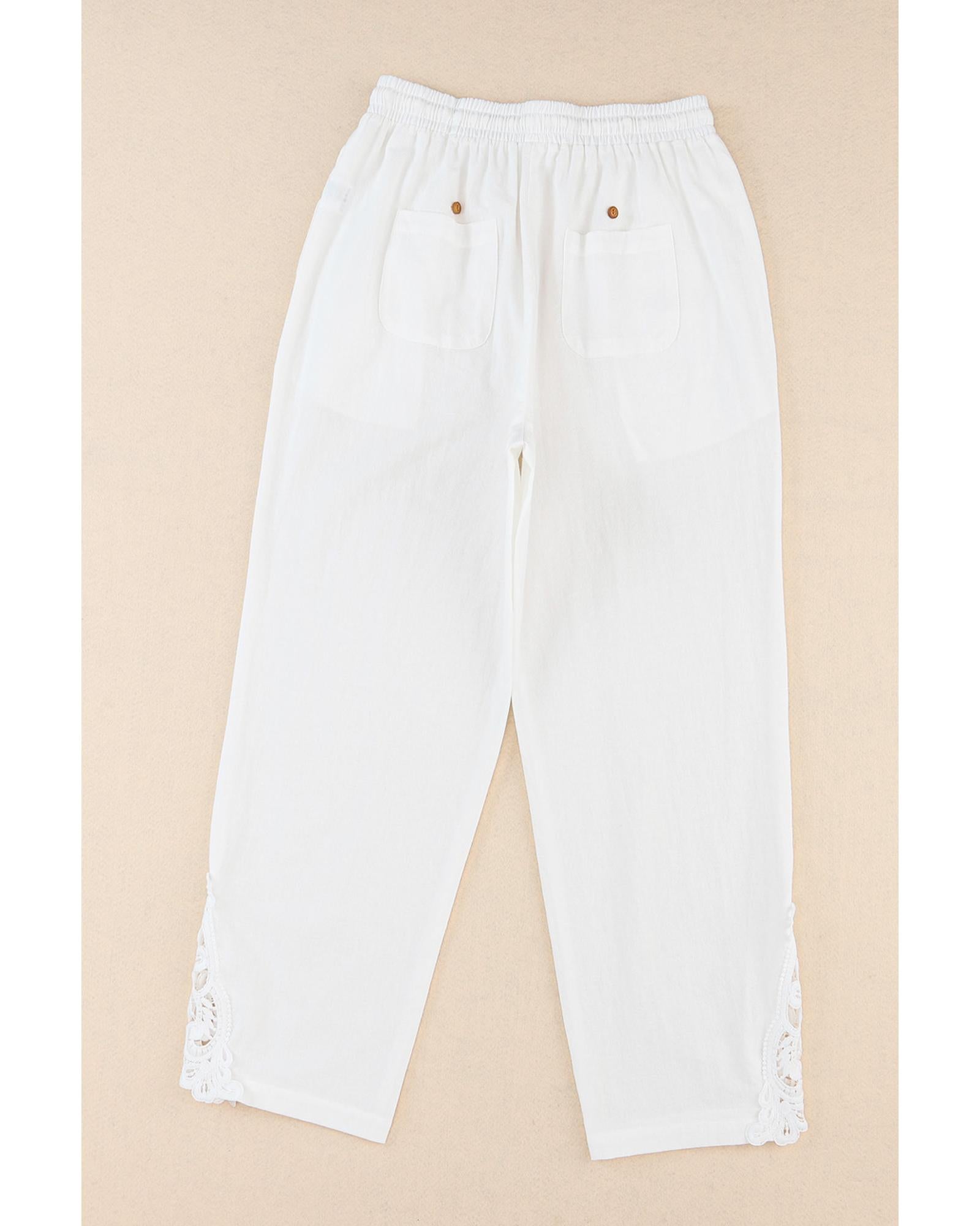 Azura Exchange Lace Splicing Drawstring Casual Cotton Pants - M