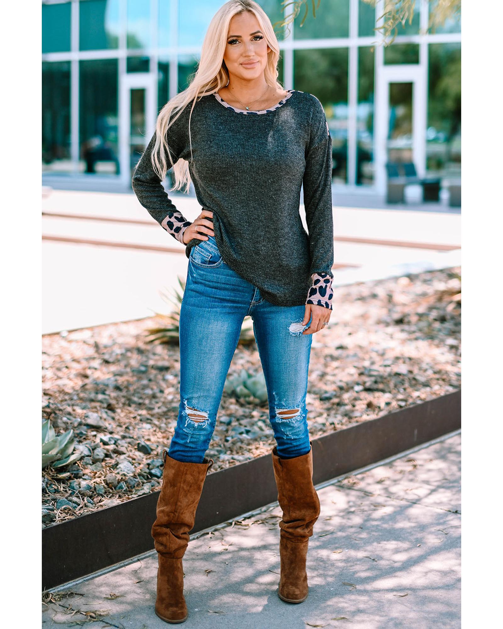 Azura Exchange Leopard Contrast Trim Knit Top - M