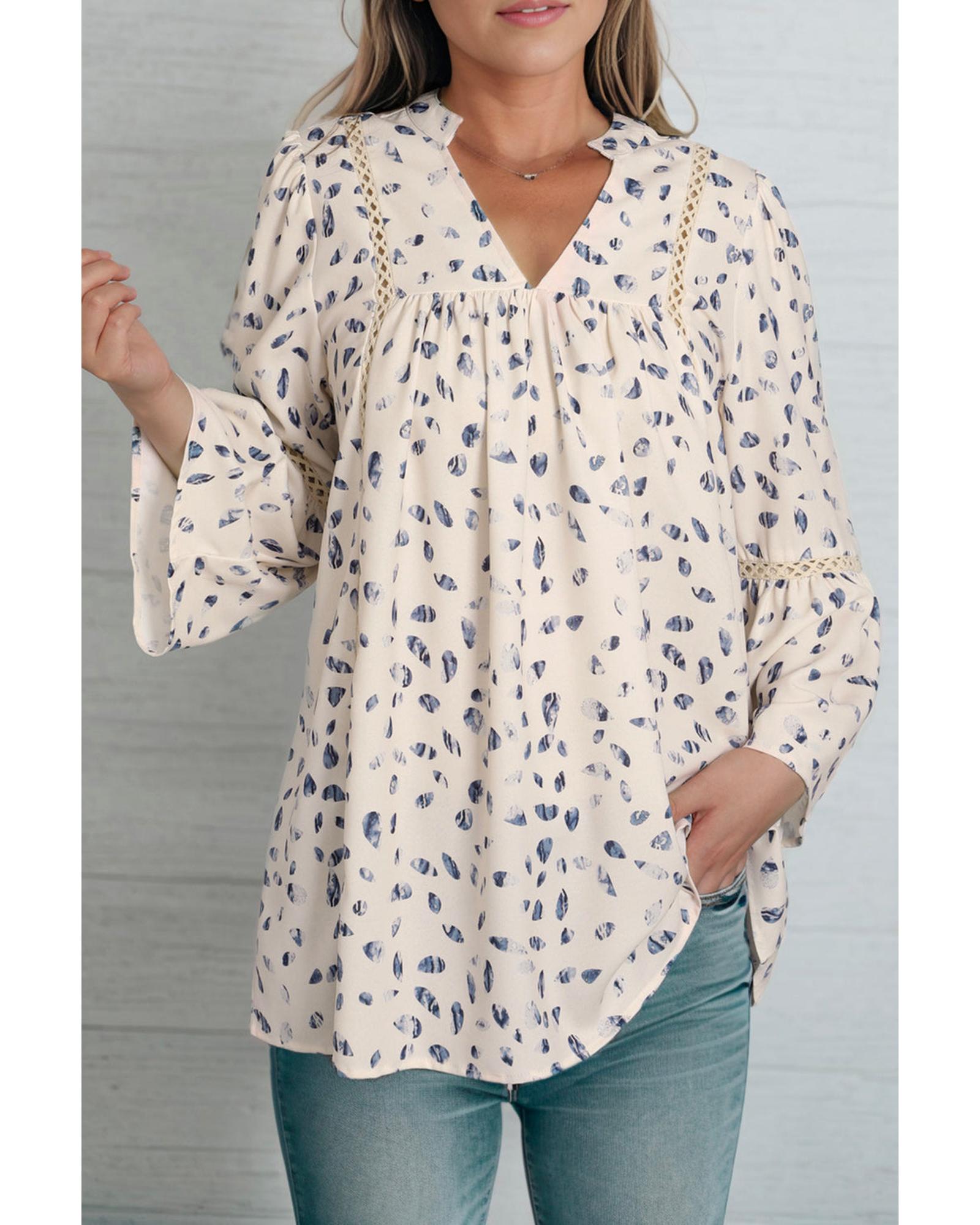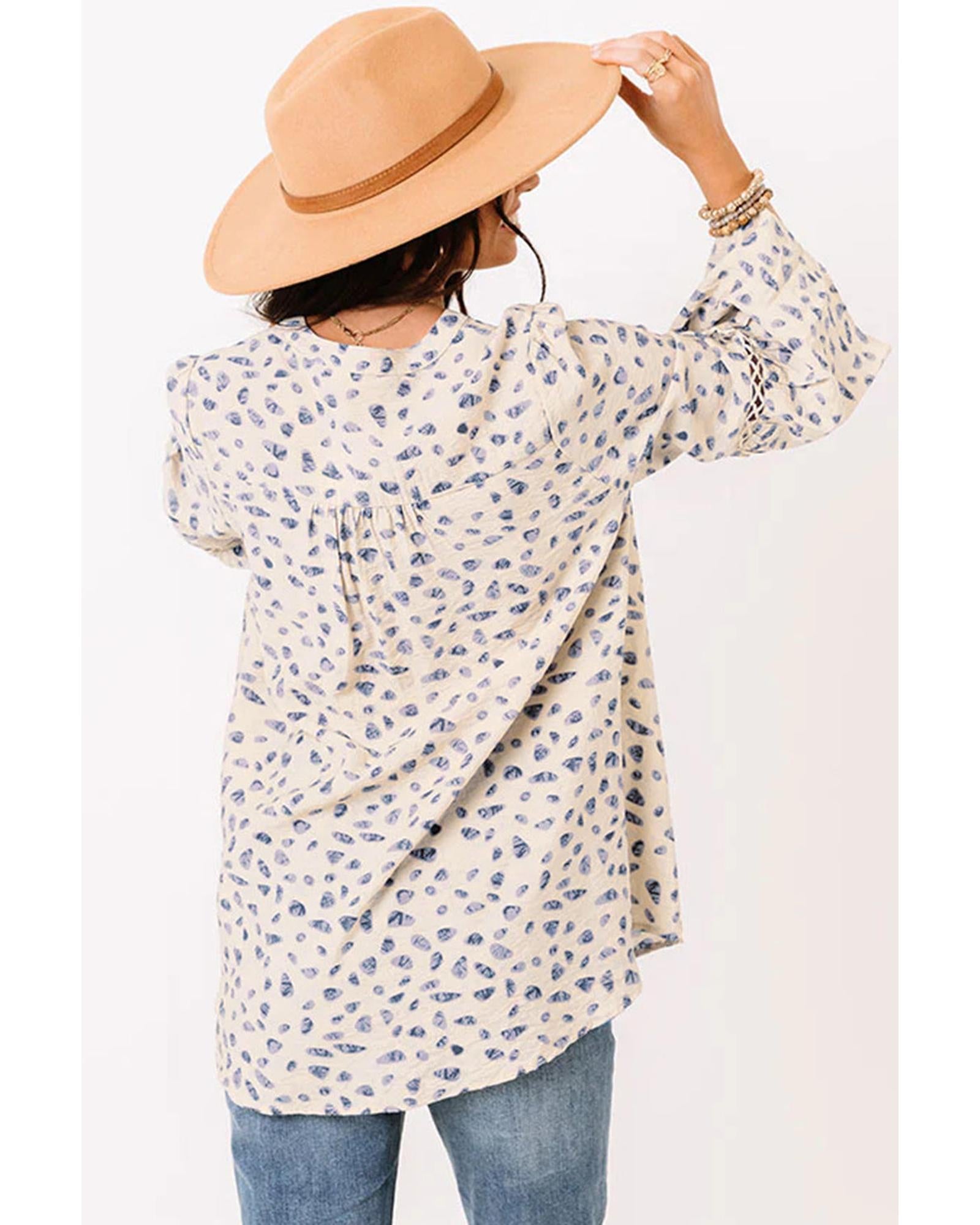 Azura Exchange Leopard Lace Trim Babydoll Blouse - M