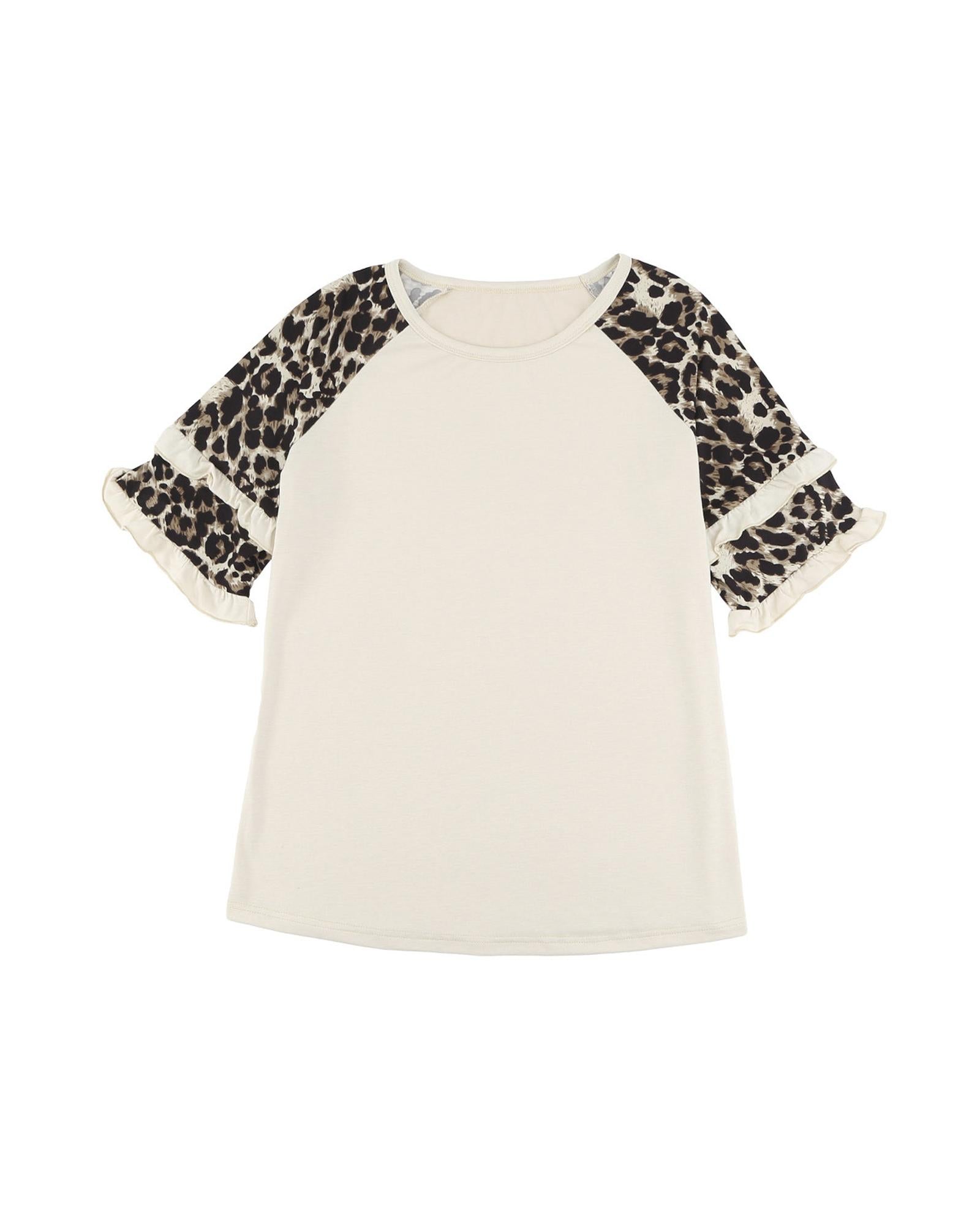 Azura Exchange Leopard Patchwork Ruffled Sleeve Top - M