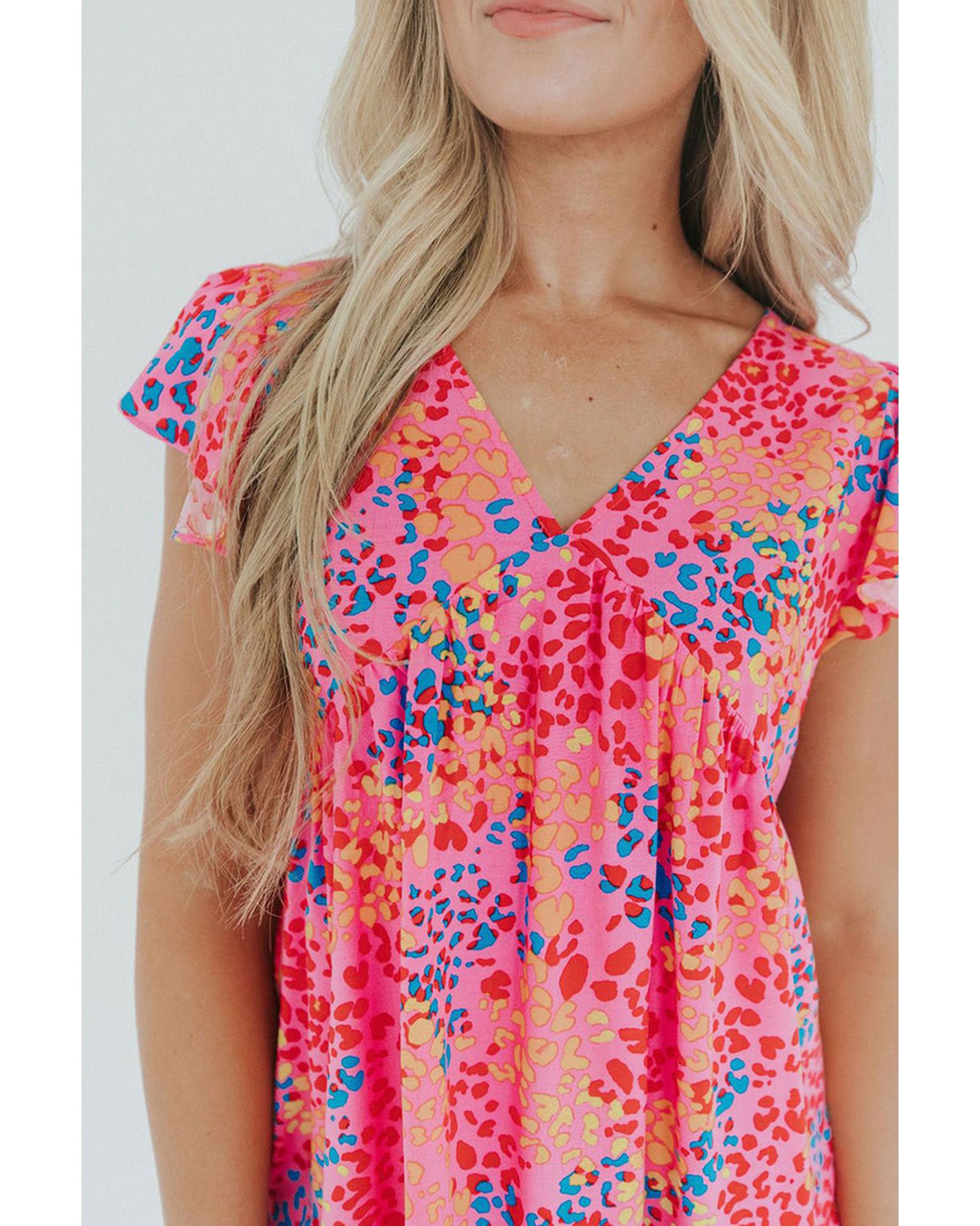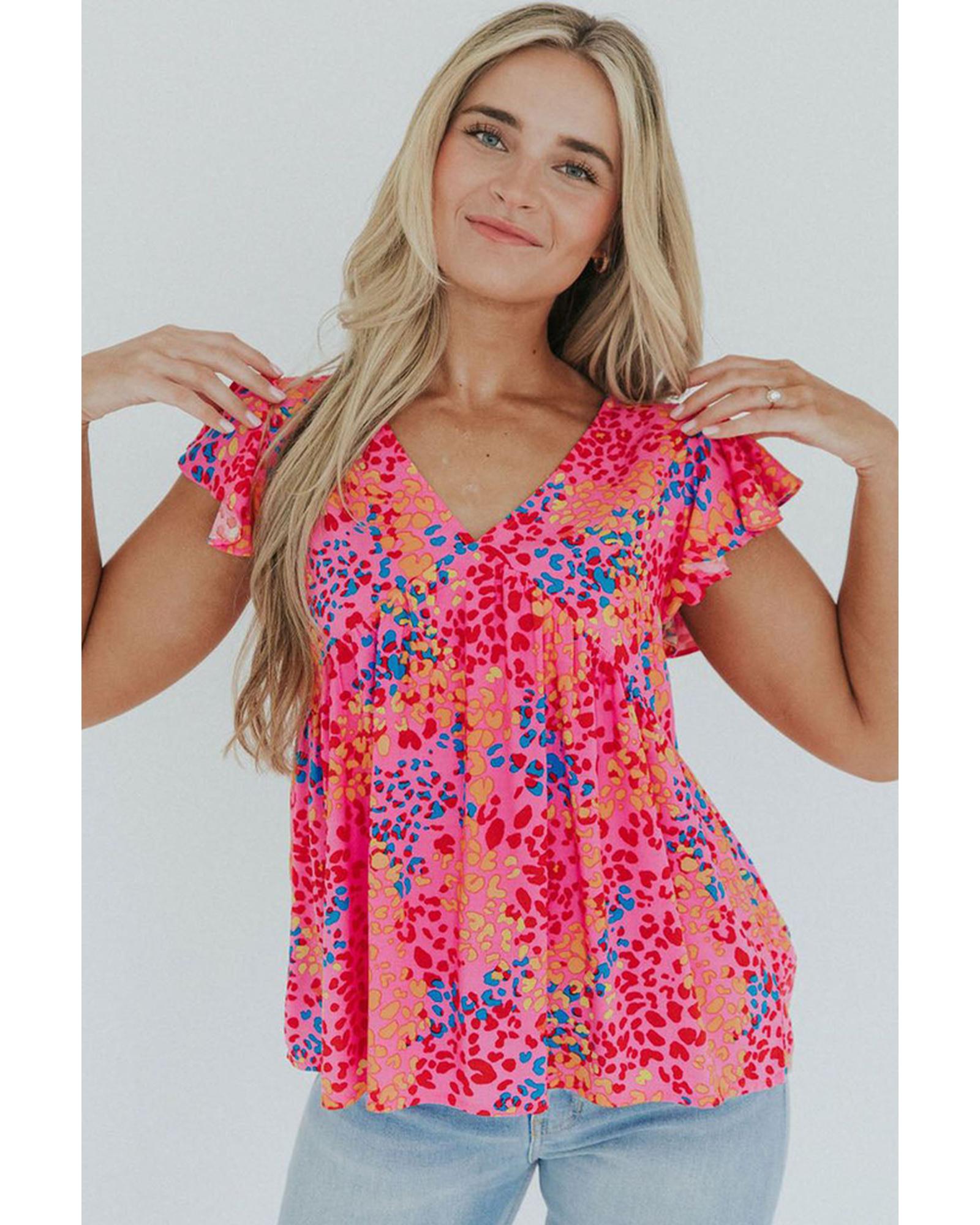 Azura Exchange Leopard Print Flutter Sleeve Blouse - L