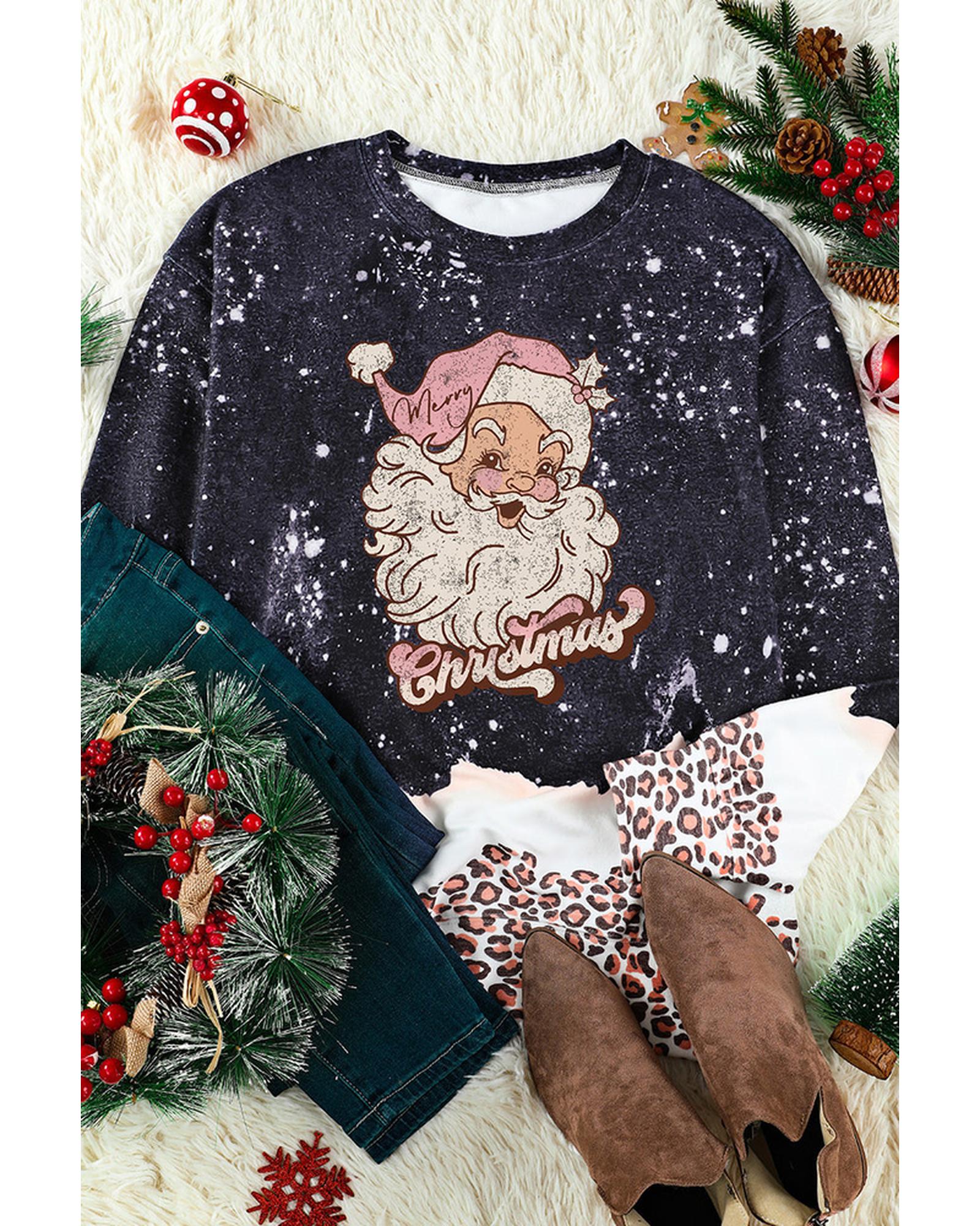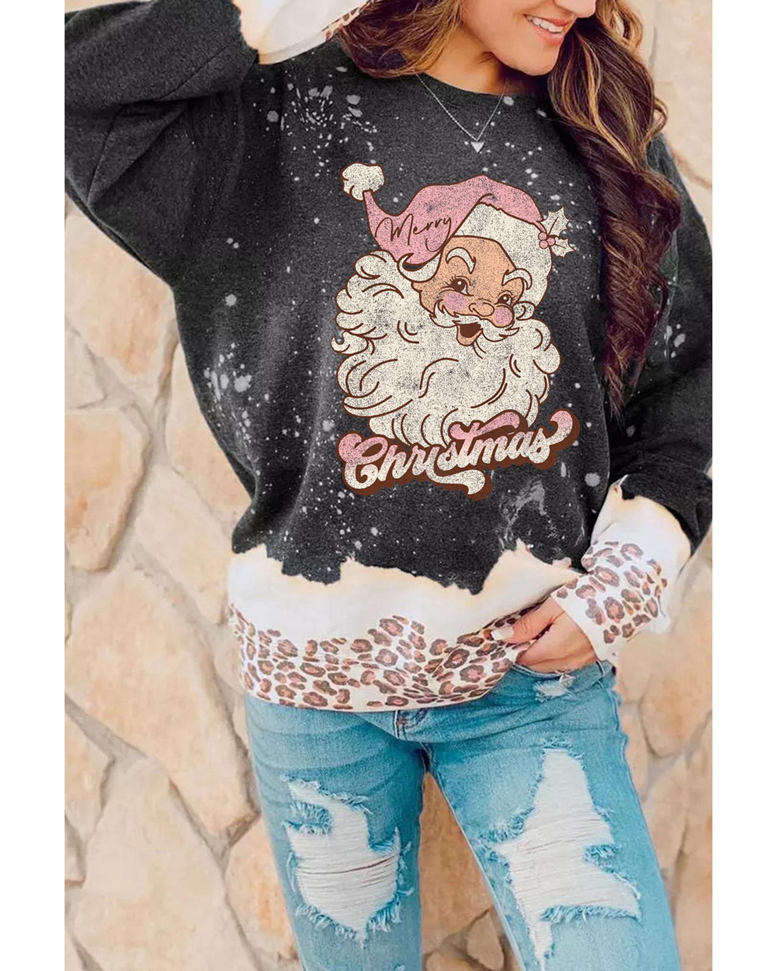 - Stylish Christmas Santa Clause Leopard Print Graphic Sweatshirt