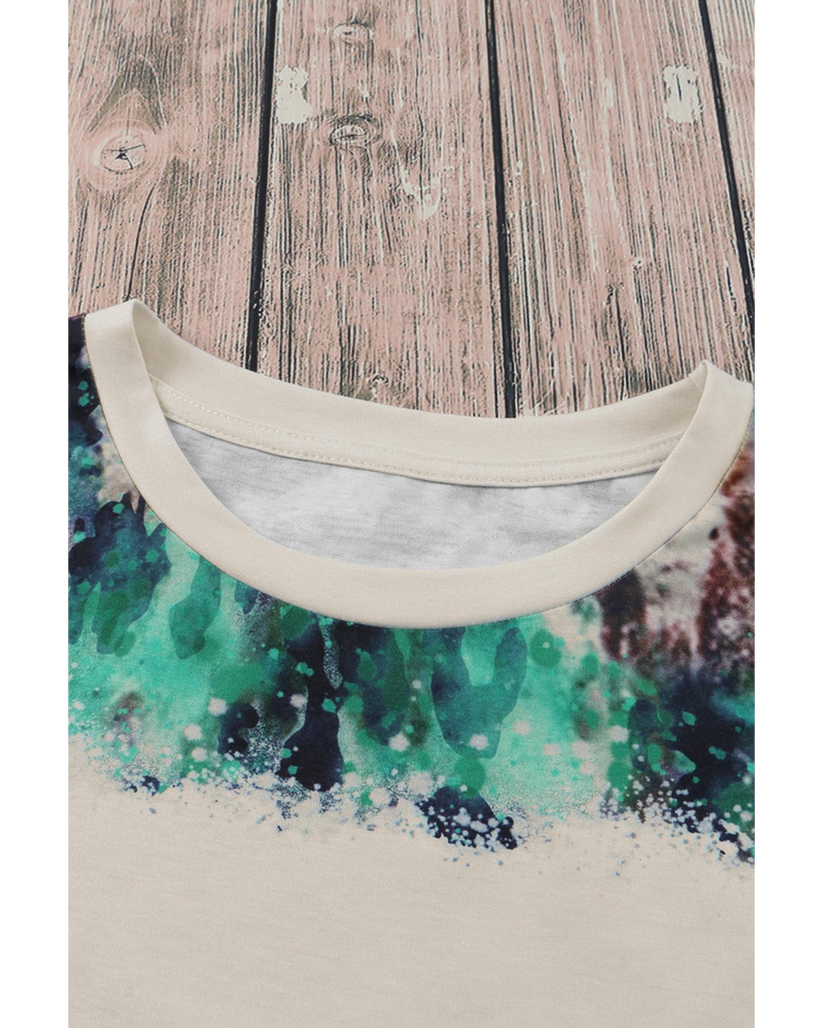 - Stylish Blank Graphic Leopard Dyed Print T-Shirt