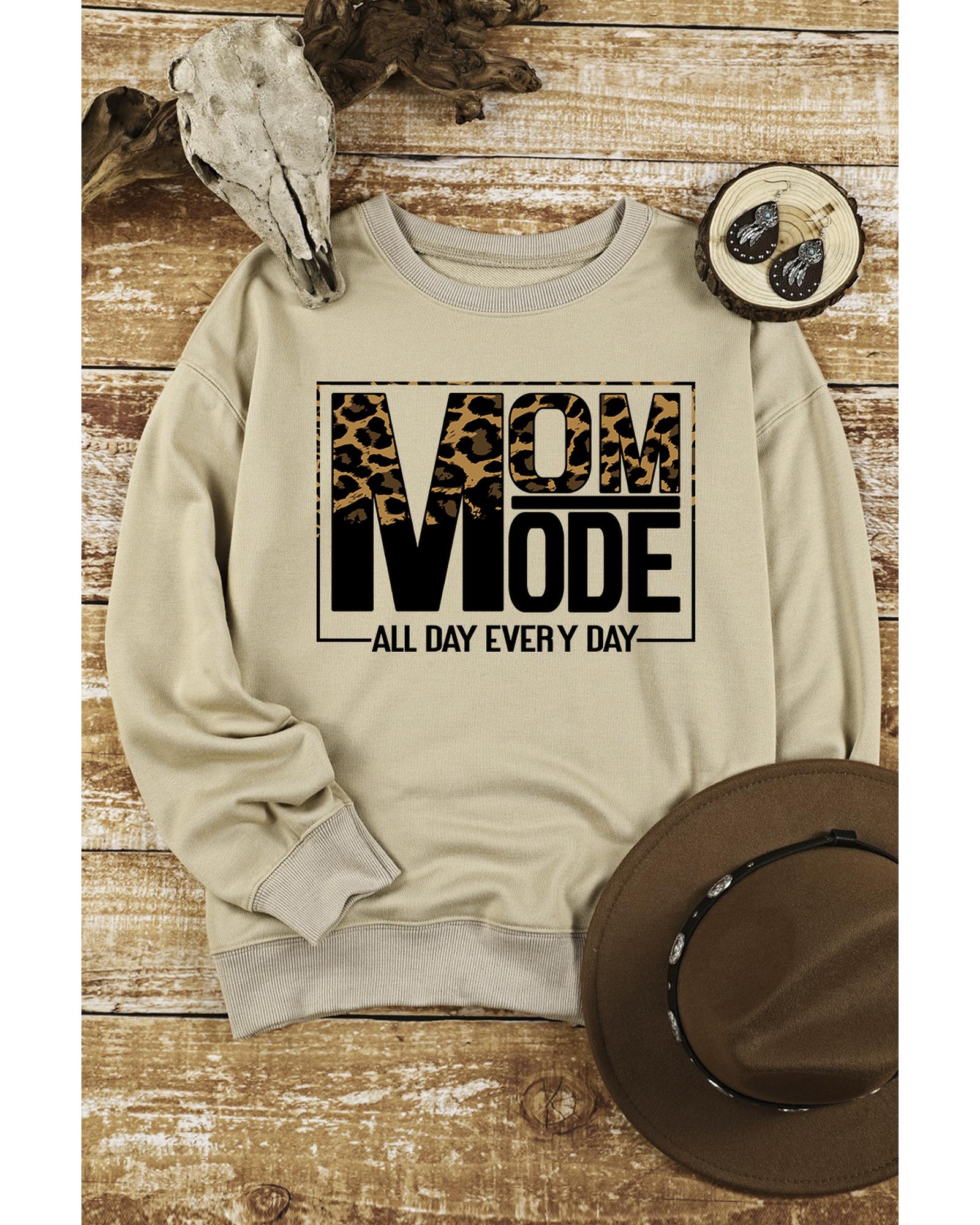 - Stylish and comfortable Khaki MOM MODE Leopard Print Long Sleeve Sweatshirt