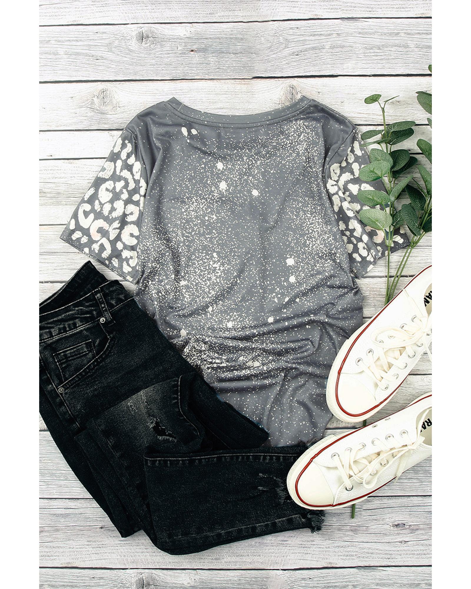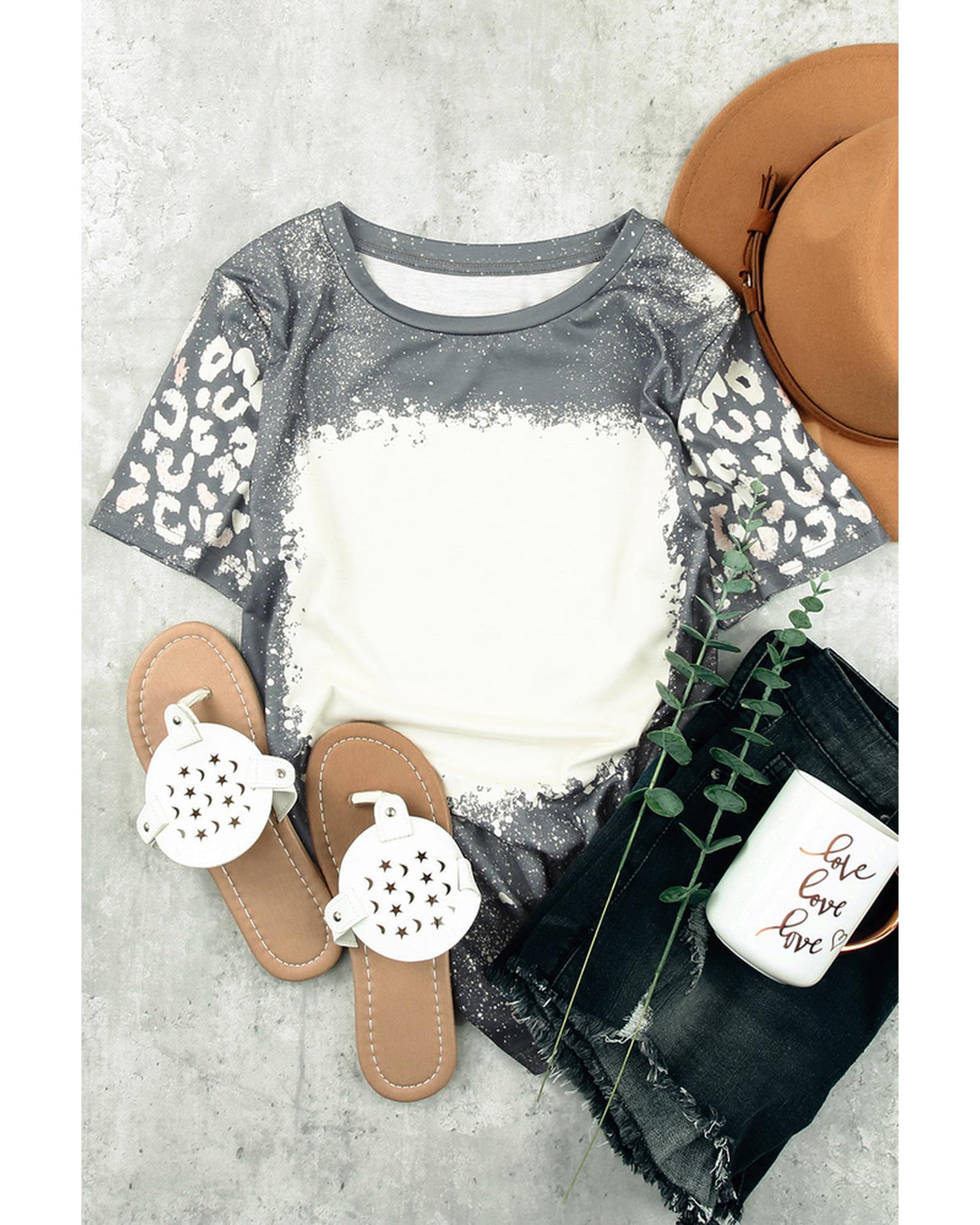- Womens Bleached Leopard Short Sleeve T-shirt