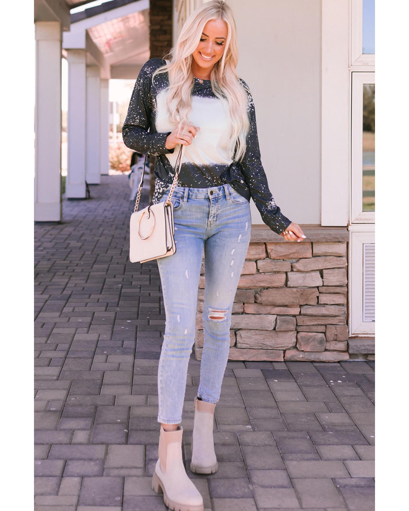 - Retro Bleached Leopard Spot Pullover