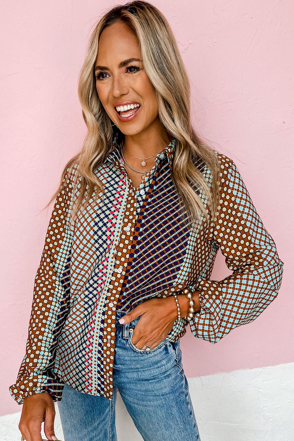 - Dot Print Long Sleeve Button Down Shift Shirt