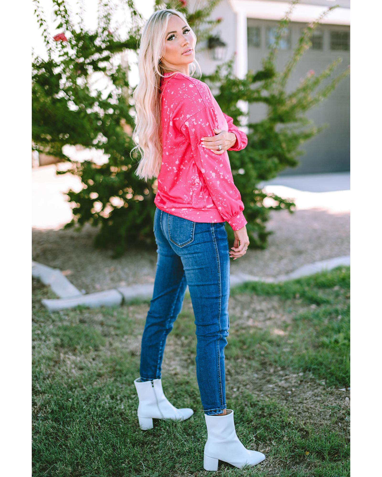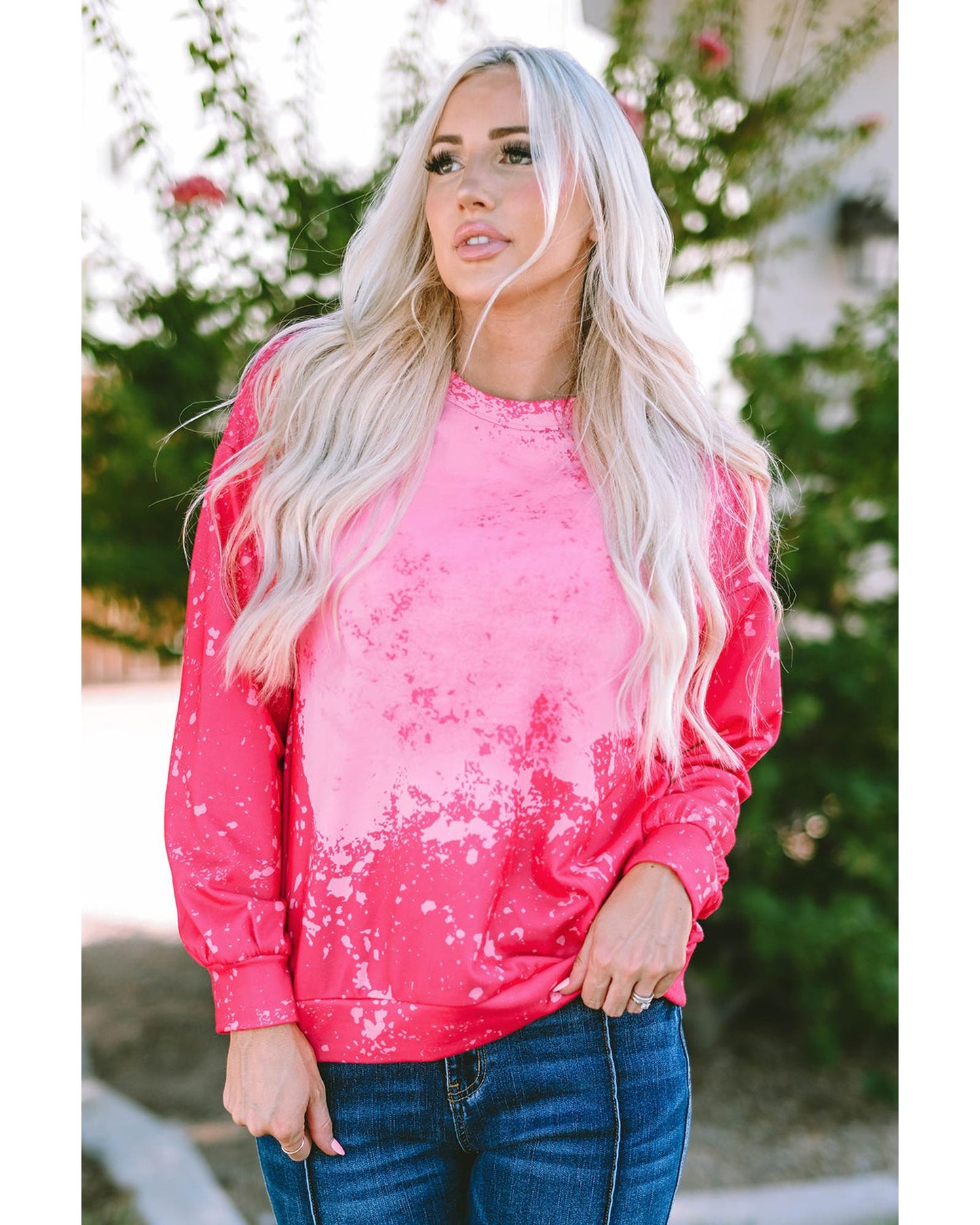- Stylish Rose Tie Dye Long Sleeve Pullover Sweatshirt