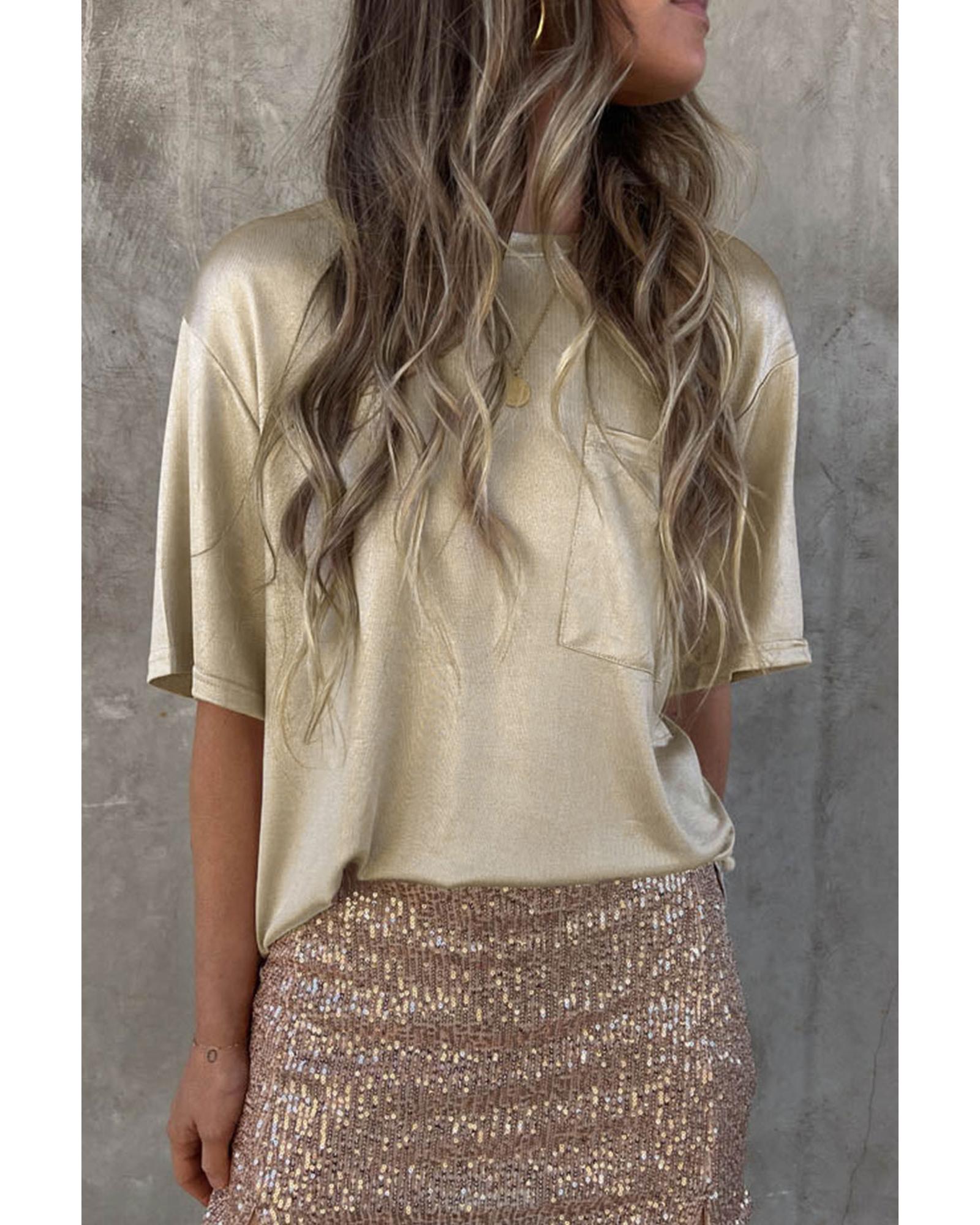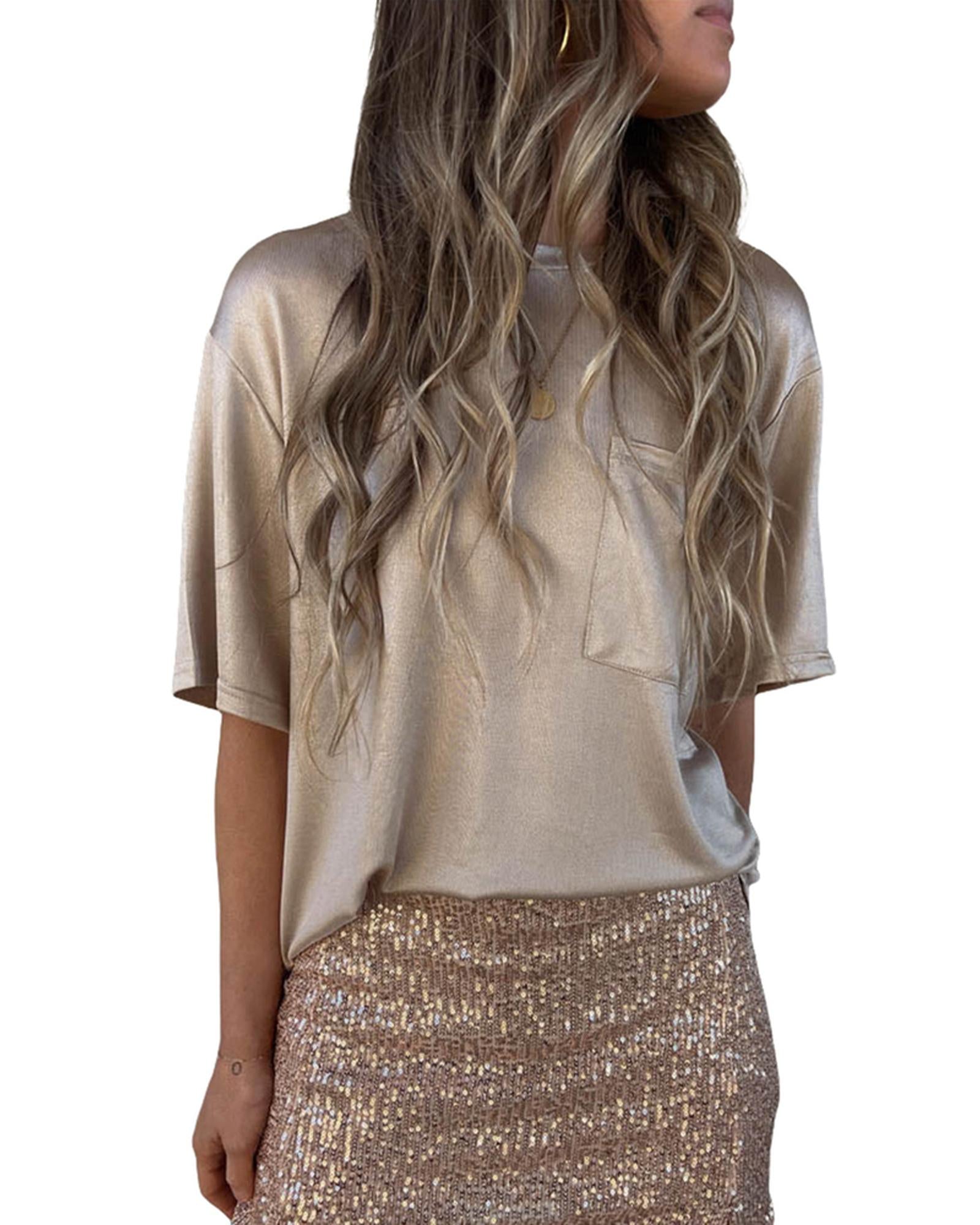 Azura Exchange Loose Fit Short Sleeve T-Shirt with Chest Pocket - M