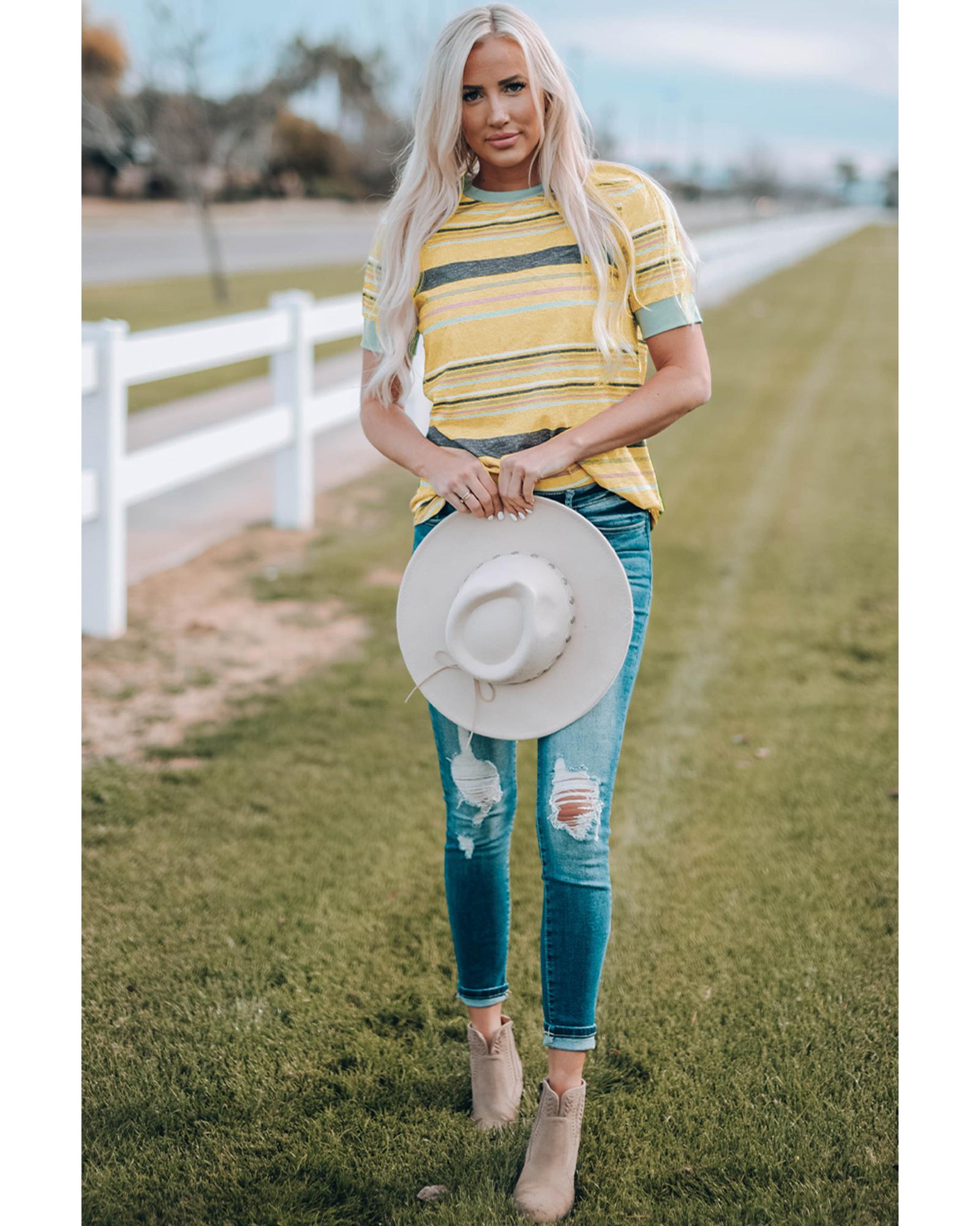 - Stylish and versatile Multicolor Stripes Crew Neck T-Shirt