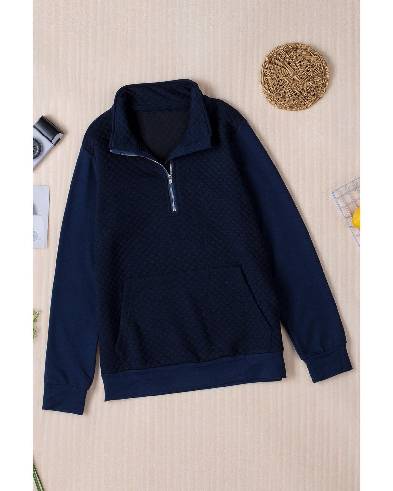 - Versatile and stylish Navy Stand Neck Waffle Zip up Sweatshirt