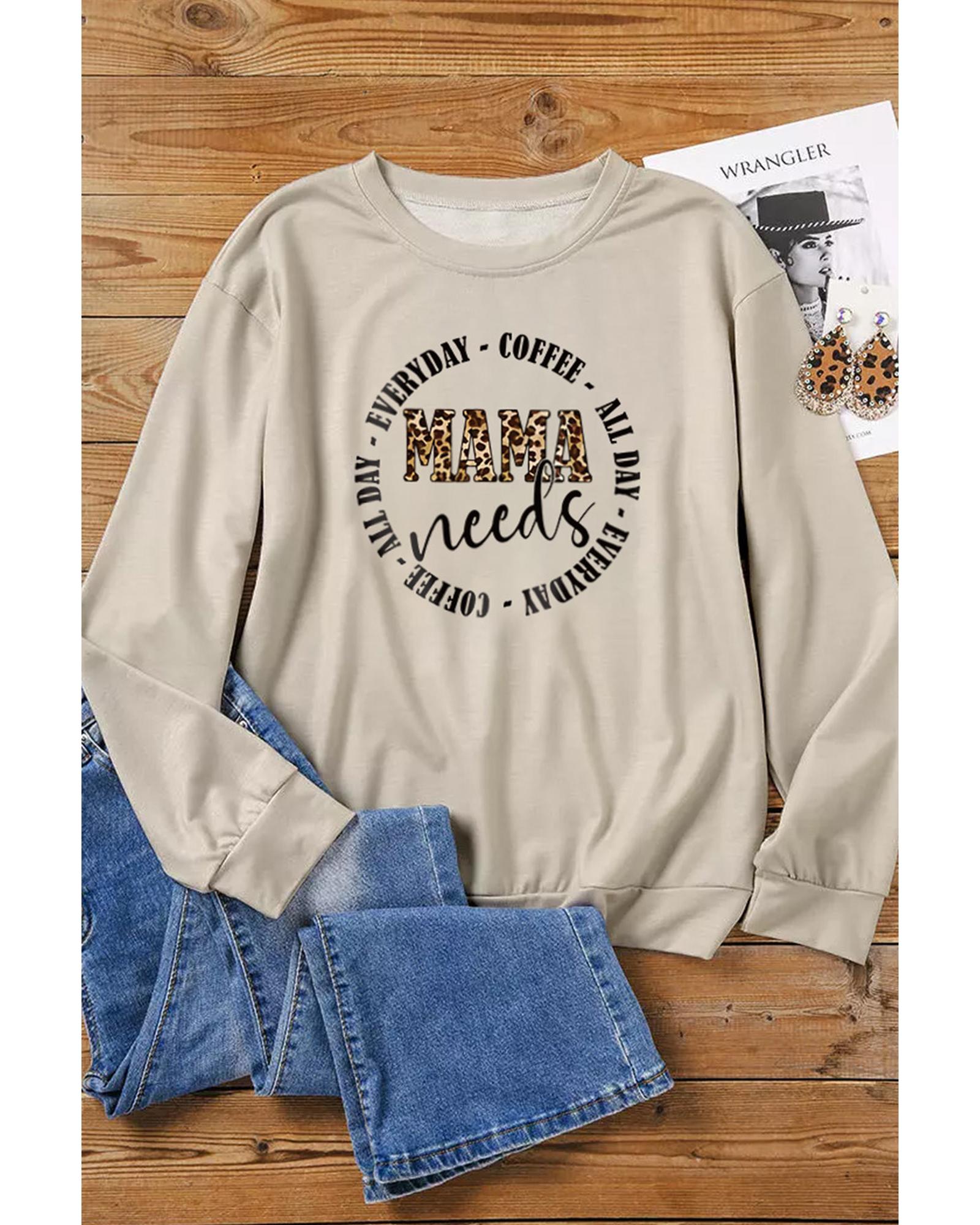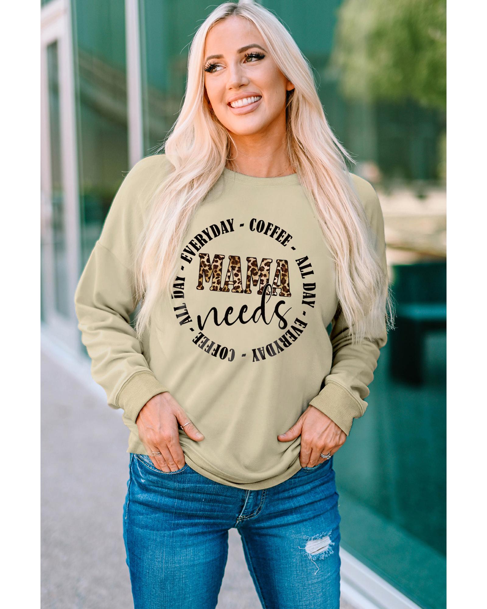 - Khaki MAMA needs ALL DAY EVERYDAY Letters Graphic Sweatshirt