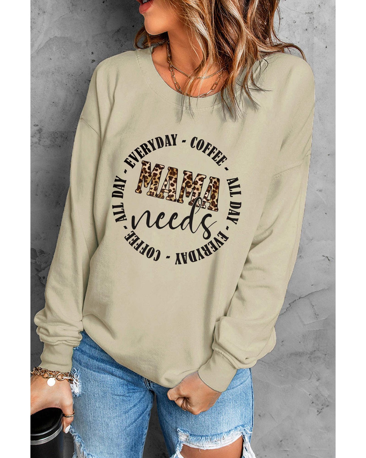 - Khaki MAMA needs ALL DAY EVERYDAY Letters Graphic Sweatshirt