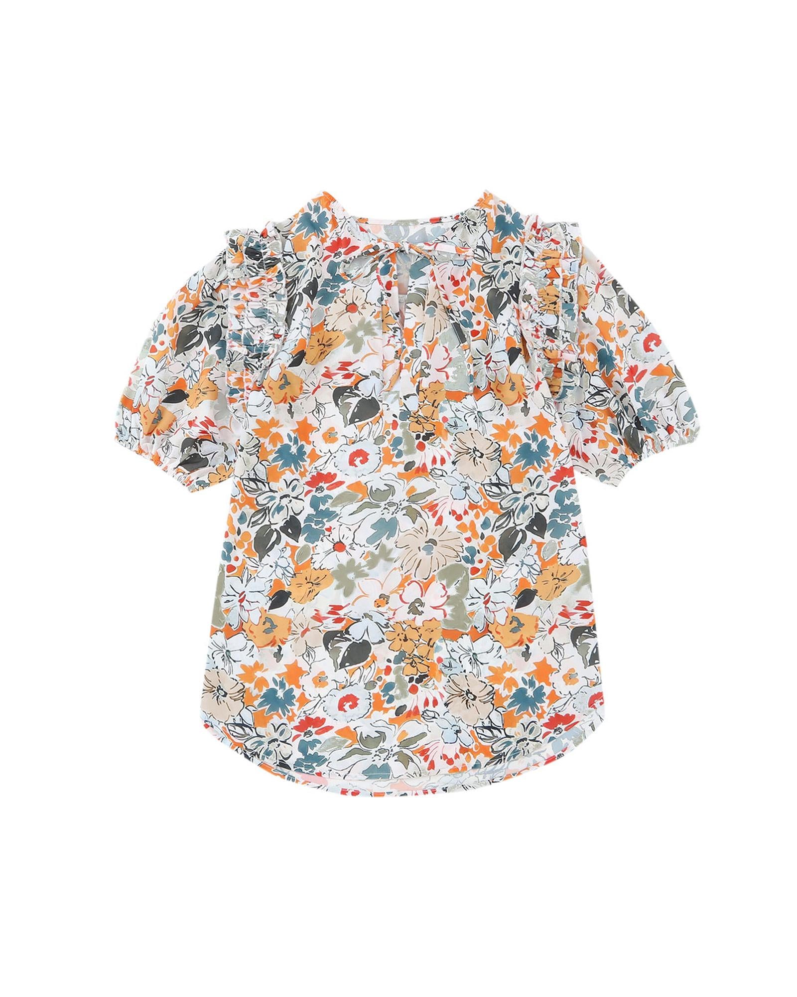 Azura Exchange Multicolor Split V Neck Flower Print Blouse - XL