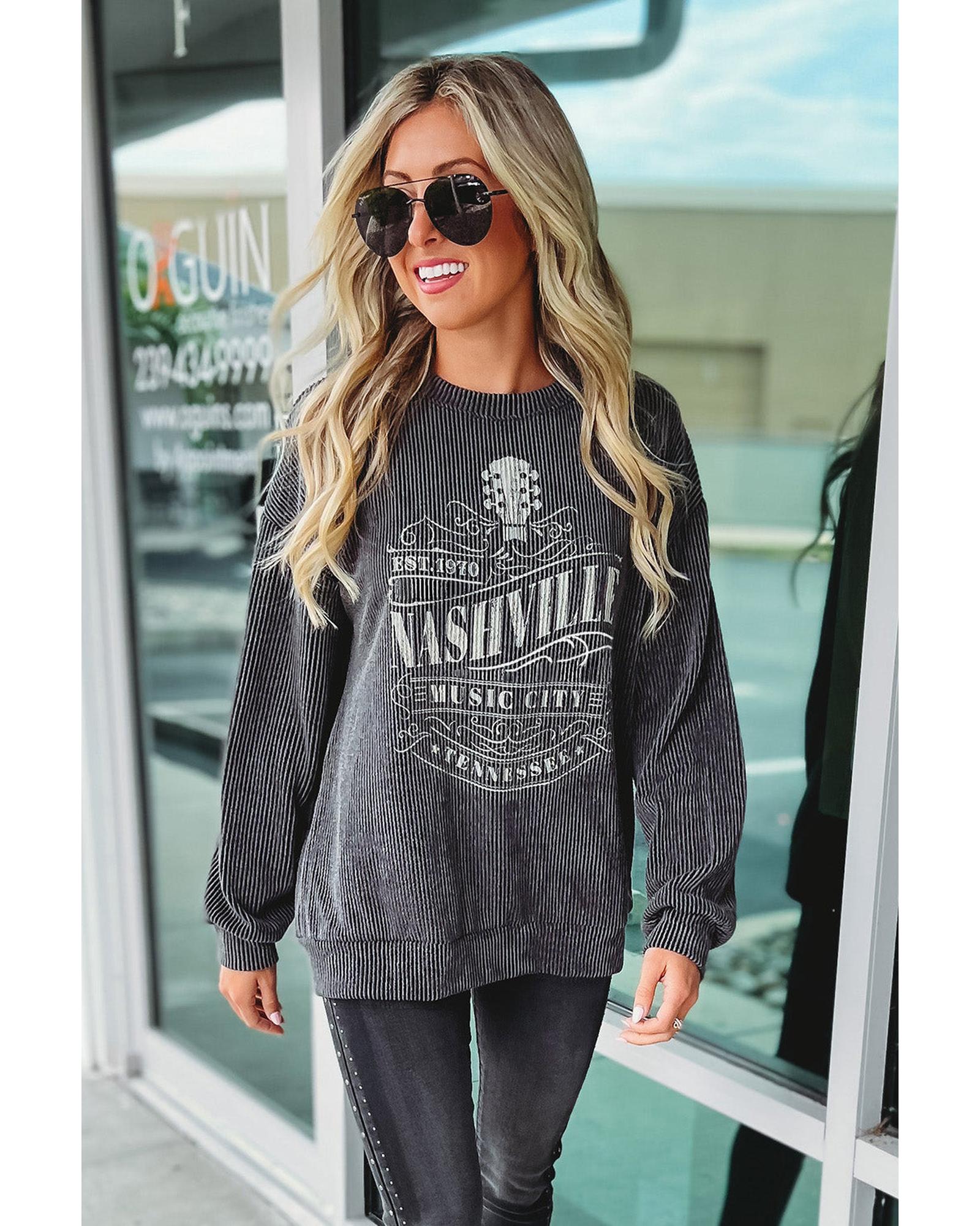 - Stylish and comfortable Black NASHVILLE MUSIC CITY Corded Graphic Sweatshirt