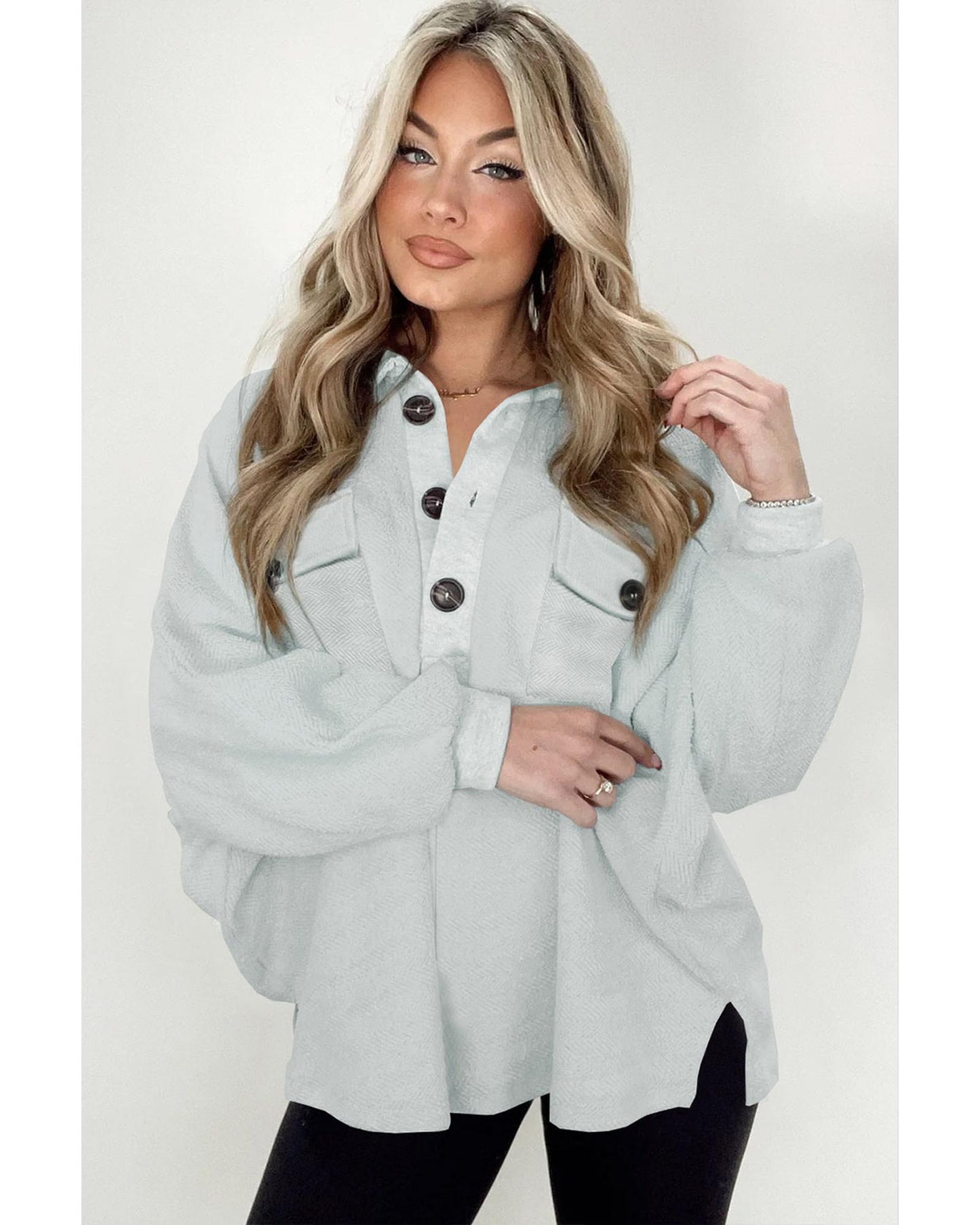 - Gray Oversized Flap Pockets Button Collared Sweatshirt