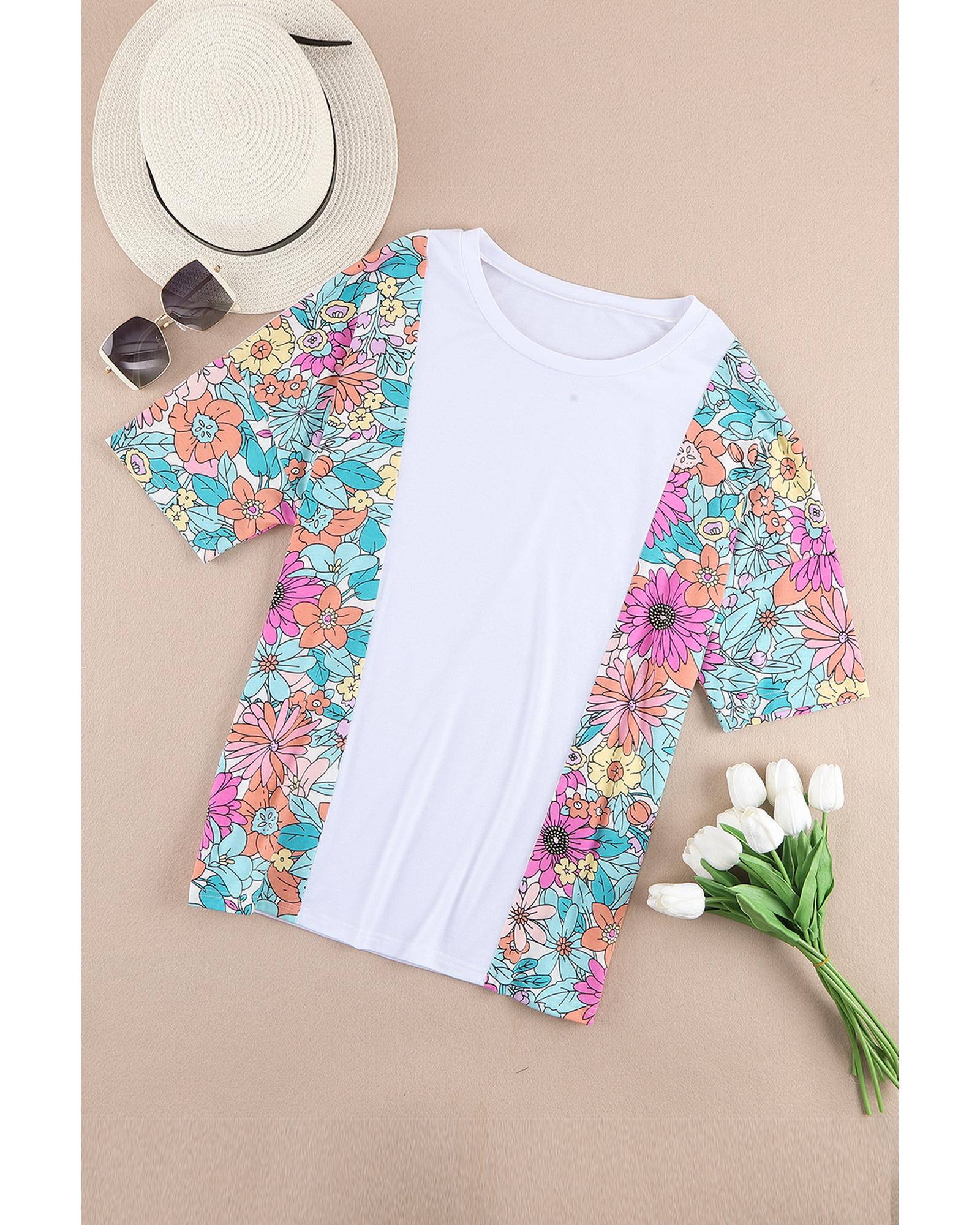 - Stylish and trendy Floral Print Patchwork Short Sleeve Top
