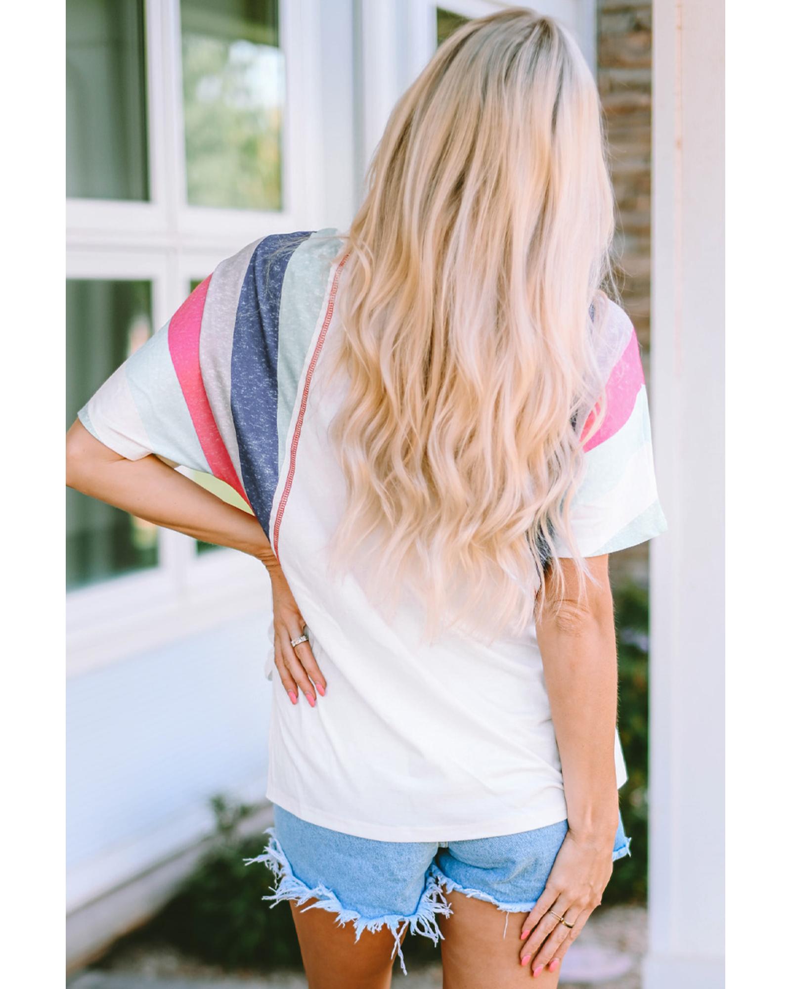- Luxurious Stripe Patchwork V Neck T-Shirt