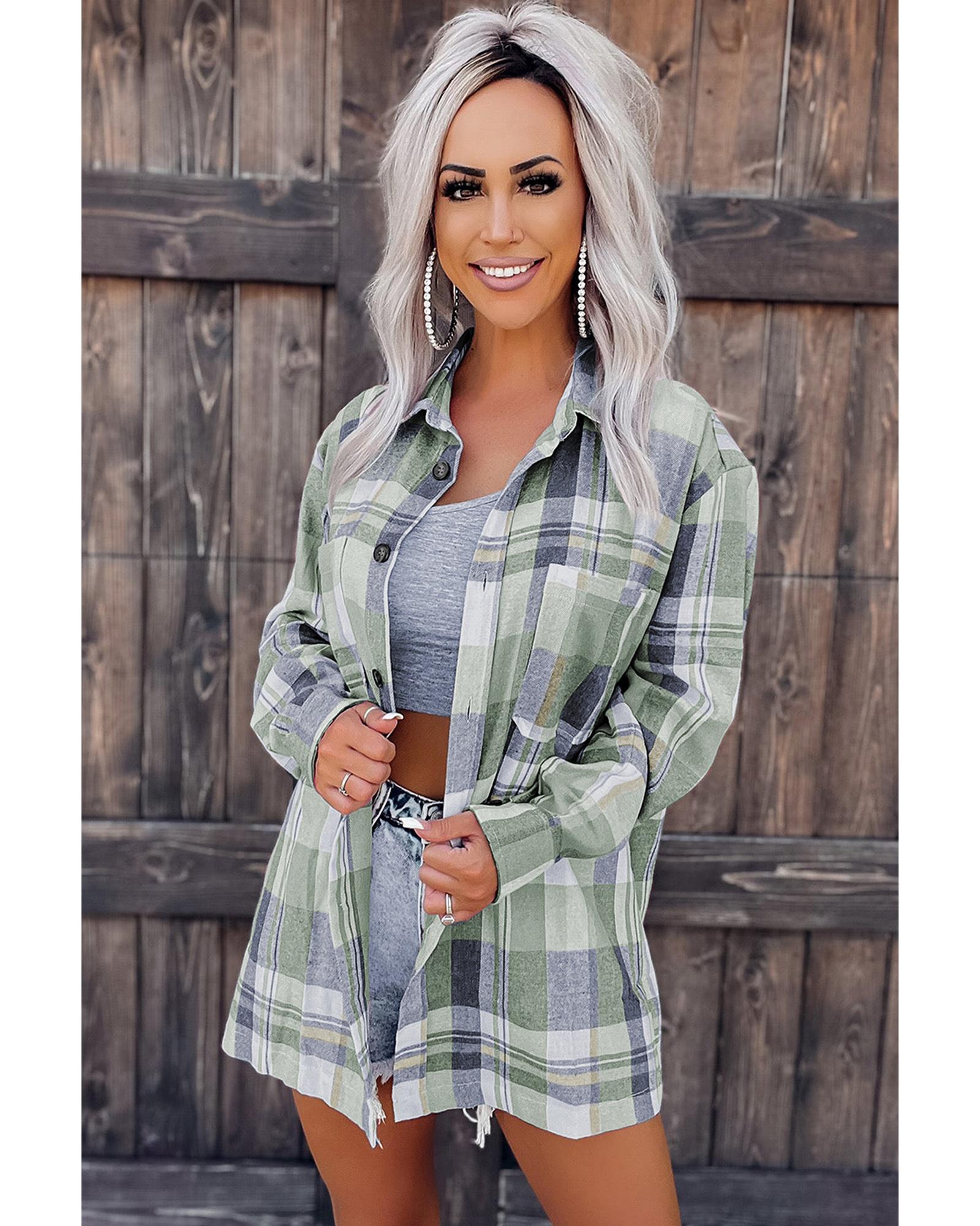 Azura Exchange Plaid Button Up Patch Pocket Shirt - S