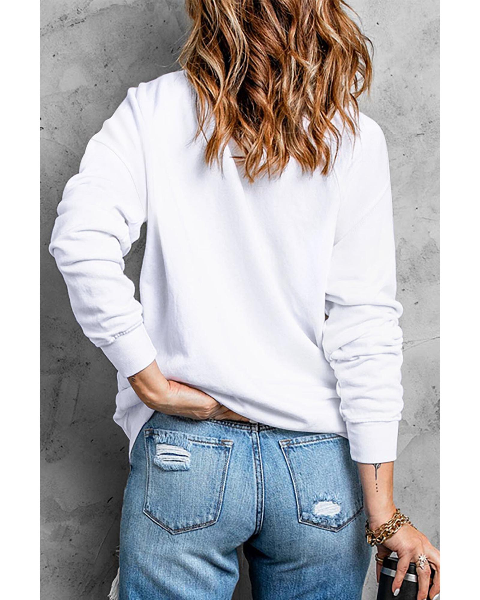 - Plaid Lip Clover Graphic Print Long Sleeve Sweatshirt