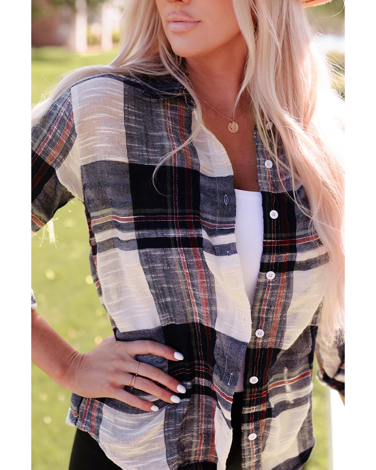 Azura Exchange Plaid Print Shirt with Distressed Raw Edge - XL