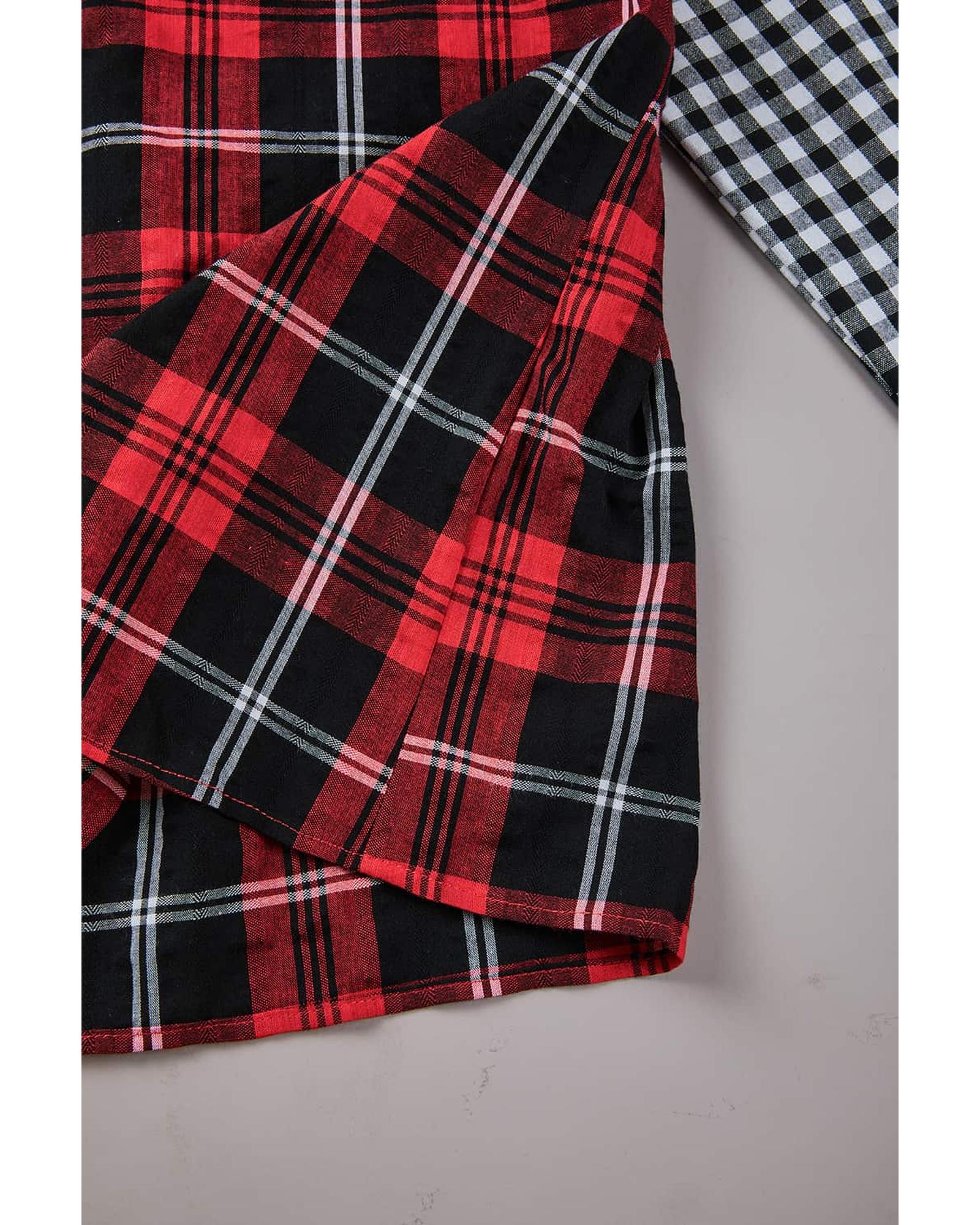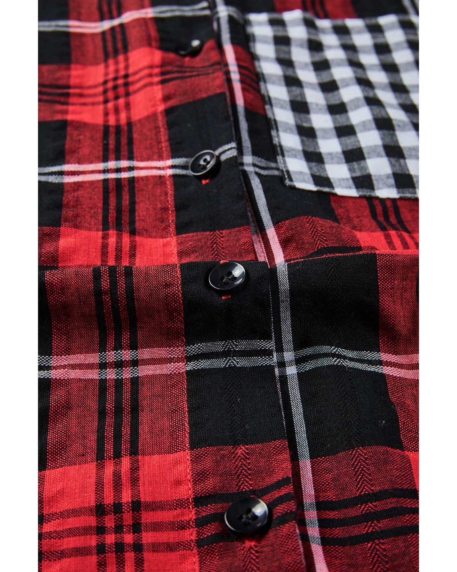 Azura Exchange Plaid Splicing Hit Color Pockets Long Sleeve Shirt - S