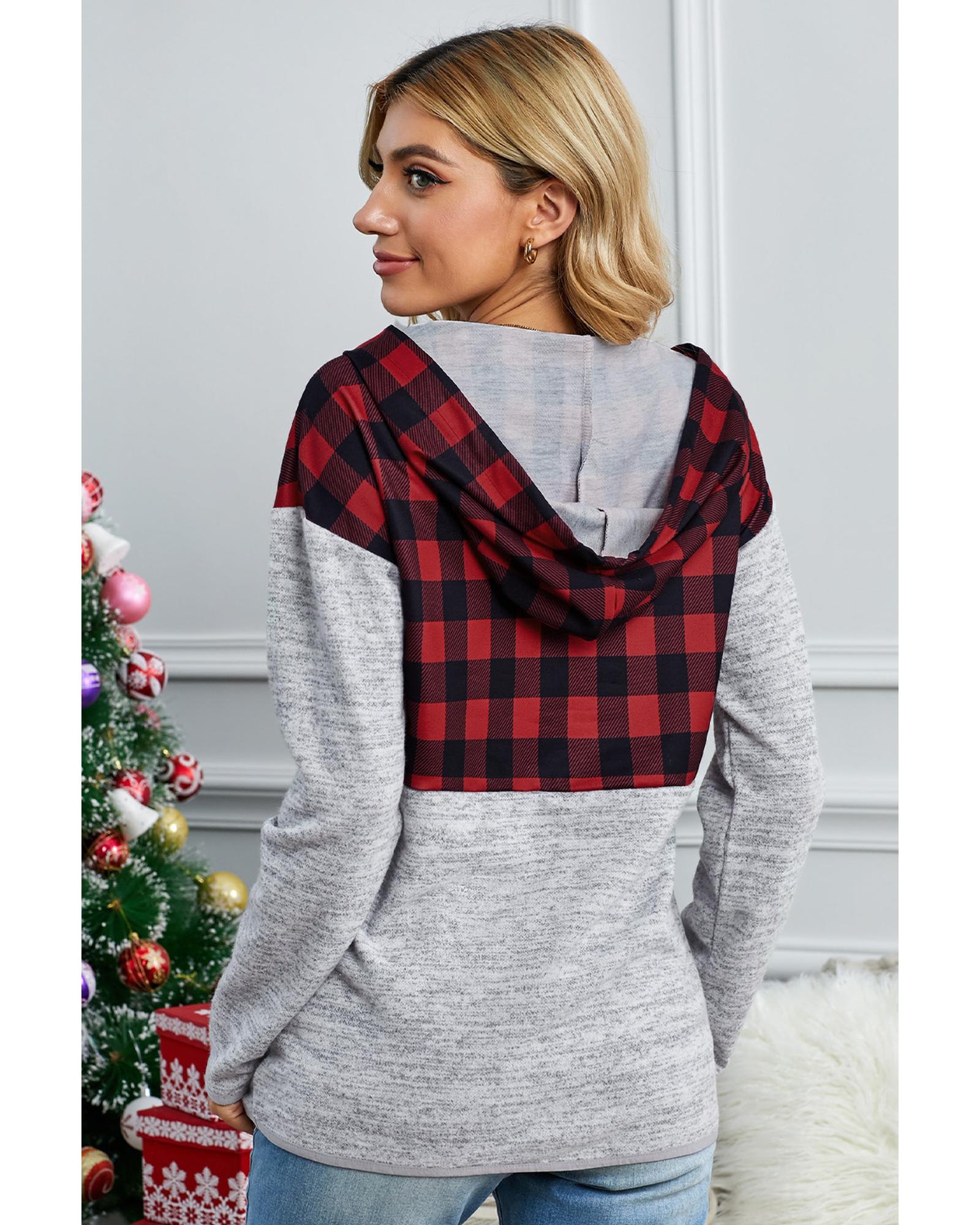 Azura Exchange Plaid Splicing Pocketed Hoodie - S