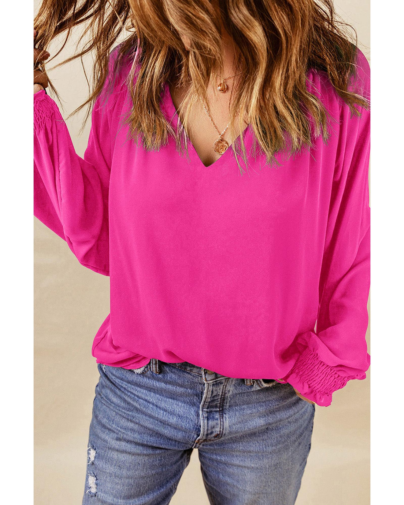 - Stylish and sophisticated Pleated V Neck Puffy Sleeve Blouse