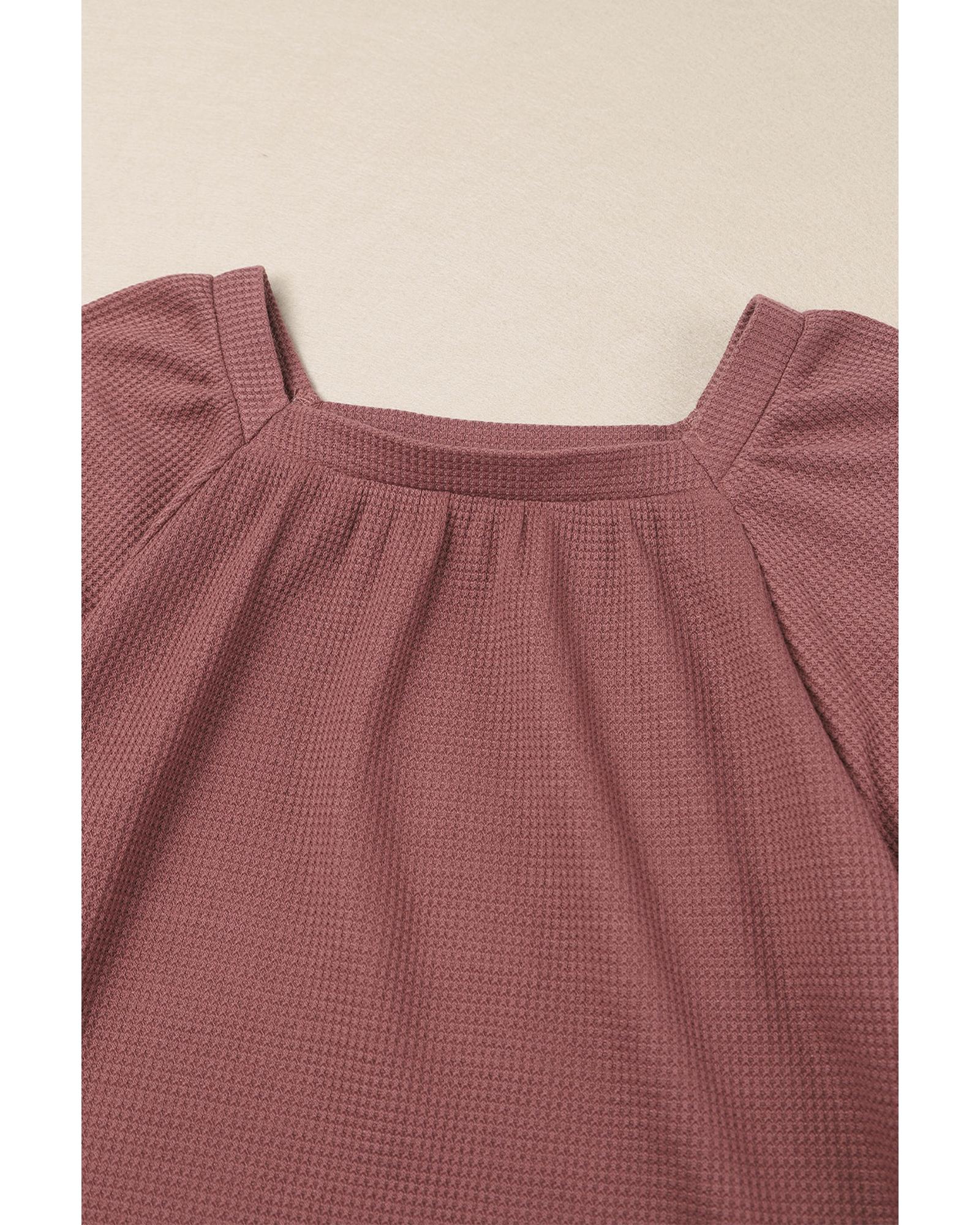 Azura Exchange Puff Sleeve Waffle Knit Top - S